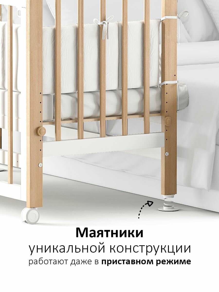 Кроватка детская Polini kids Porto 1300, белый-дуб каменный