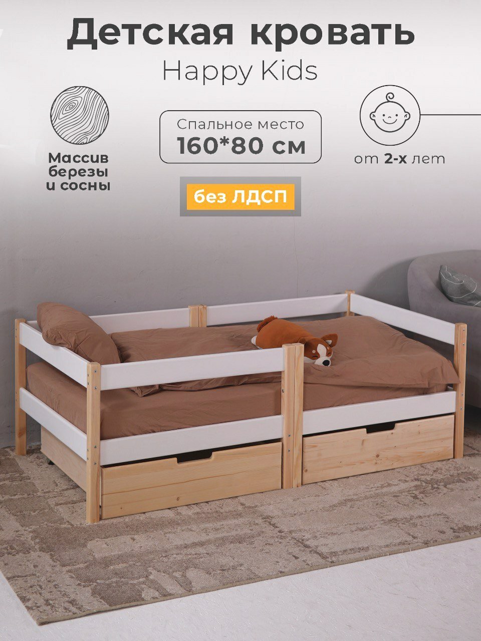 Детская кровать Happy Kids 160х80 интересное: