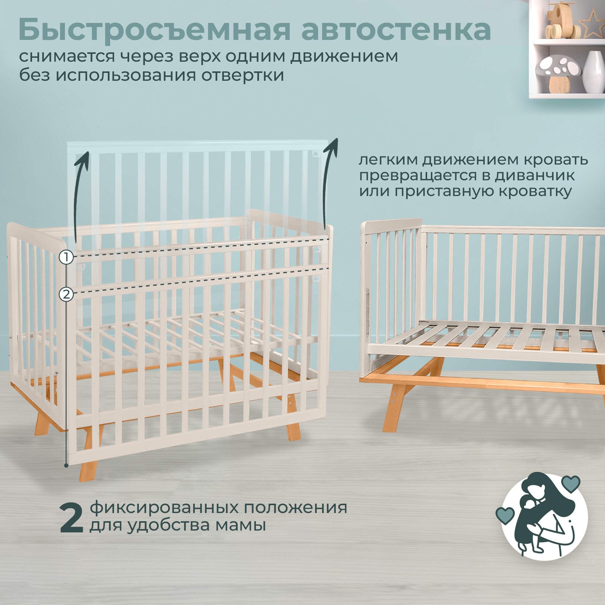 ВДК Детская кровать-трансформер «Слоник» с поперечным маятником, цвет белый