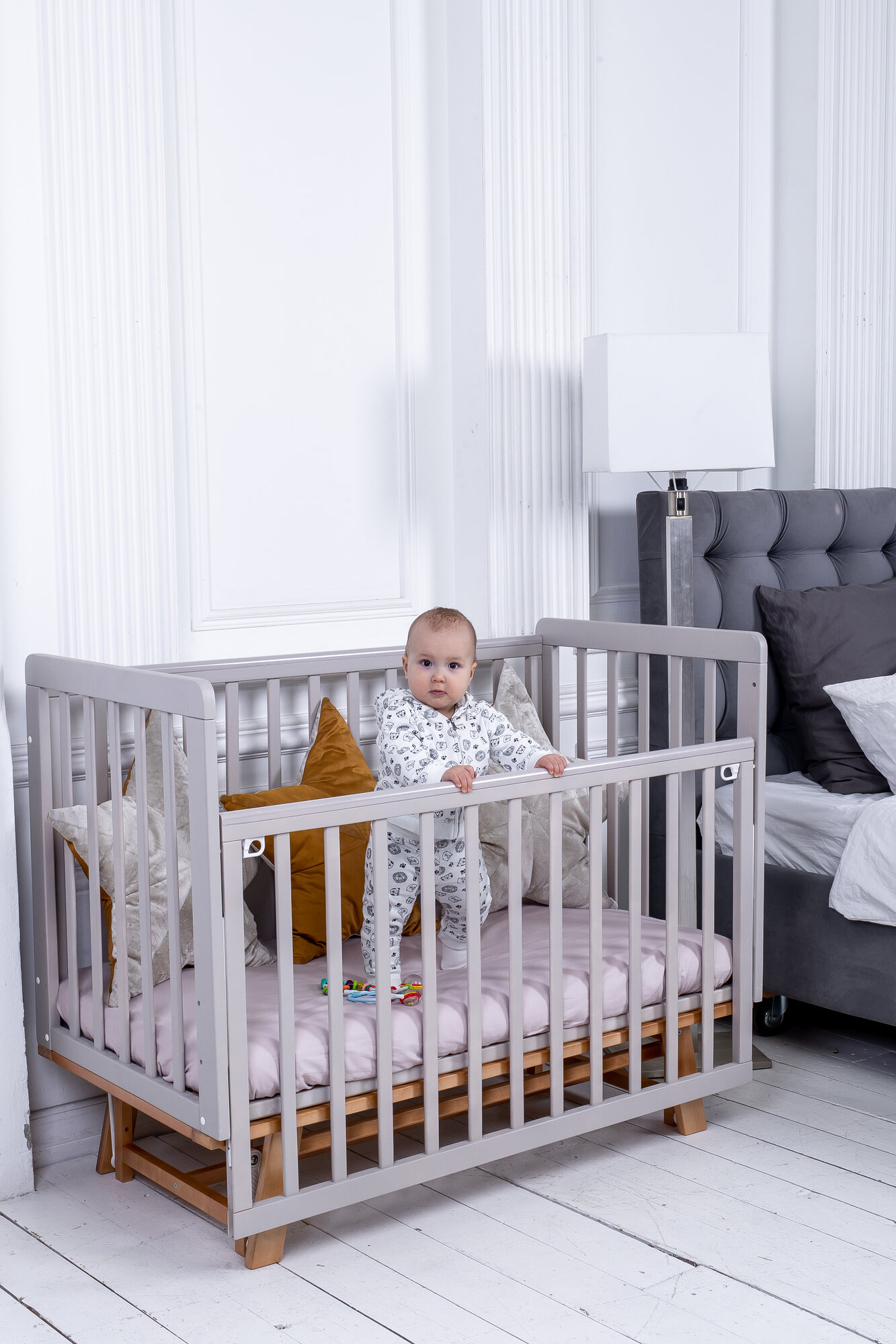 Кроватка детская Polini kids Porto 1300, белый-дуб каменный