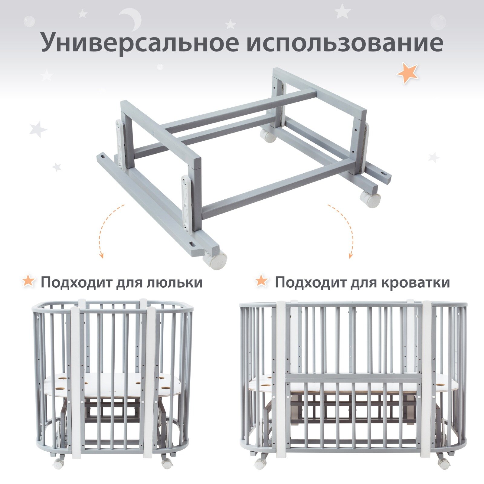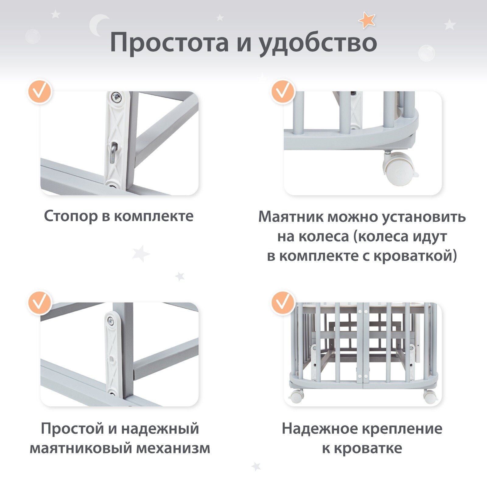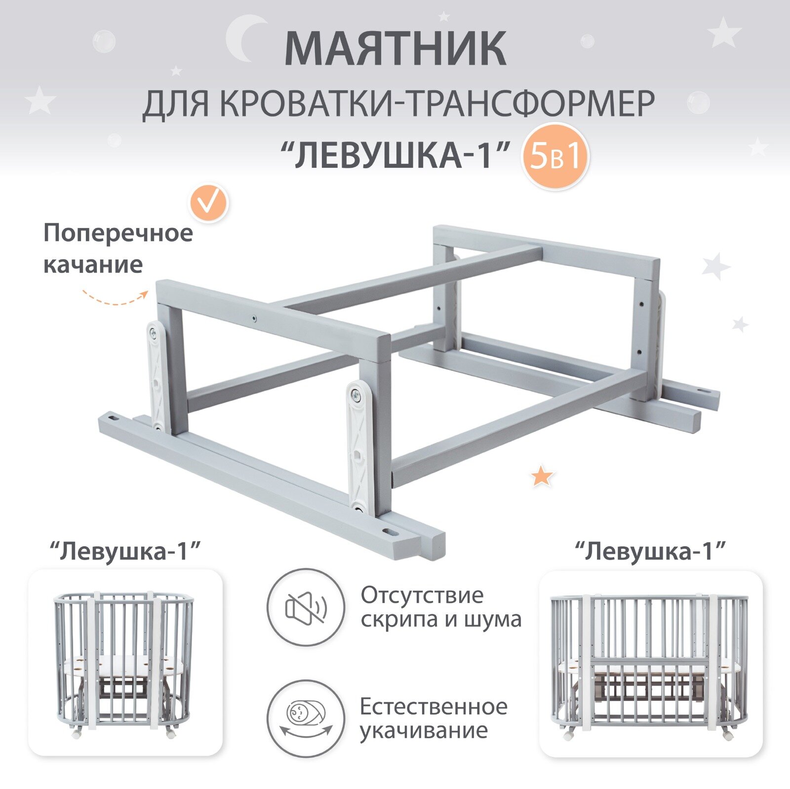 Маятник для кроватки Лёвушка-1 5в1, 120х60 см, 85х60 см, Береза, цвет Серый интересное: