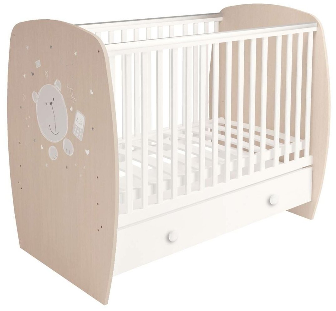 Кроватка детская Polini kids Porto 1300, белый-дуб каменный