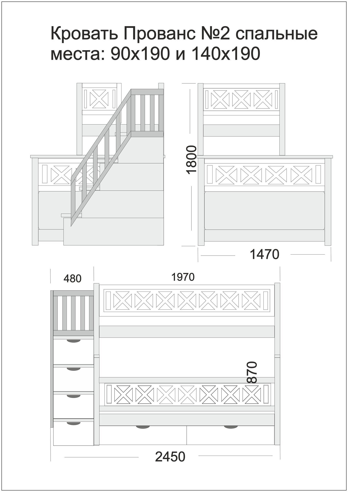Двухъярусная кровать Прованс №2, спальные места 90х190 и 140х190, цвет белый интересное: