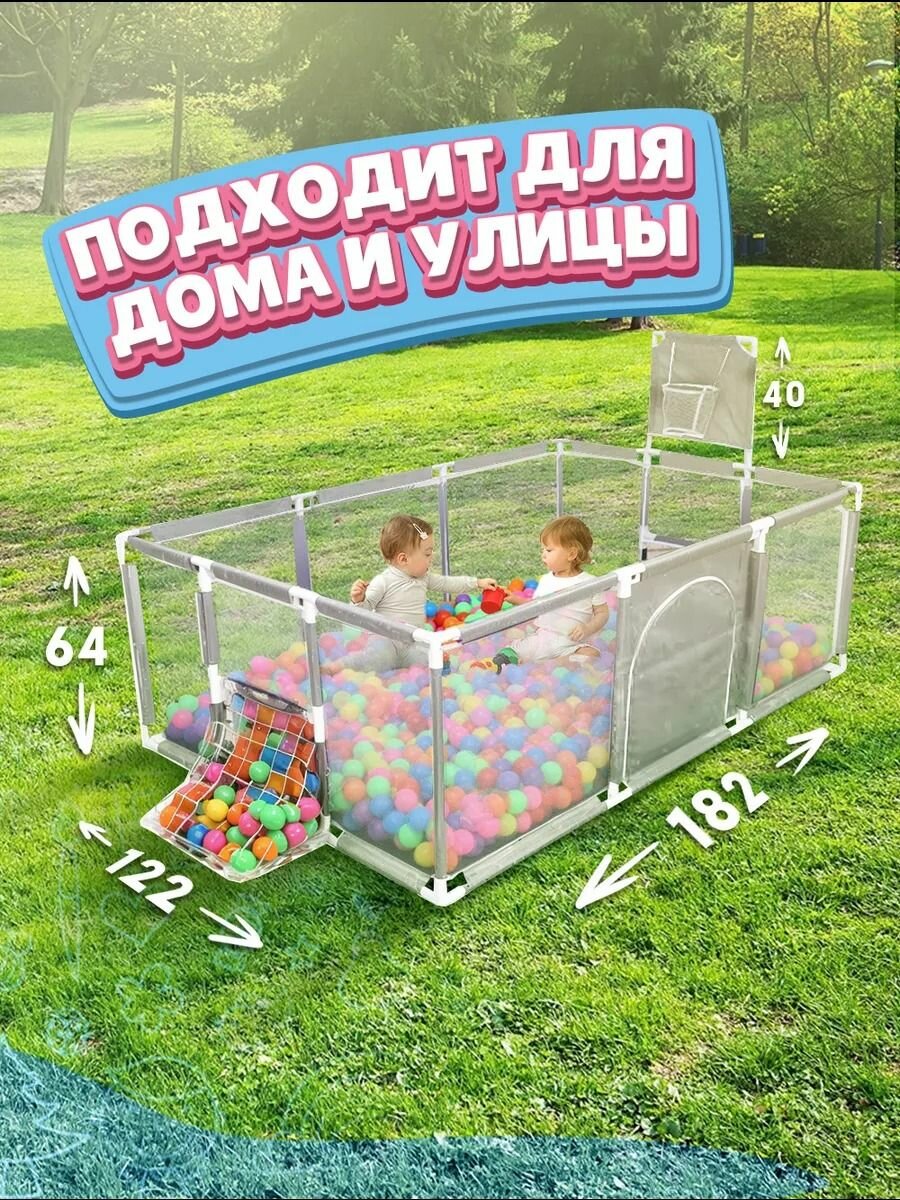 Детский манеж игровой усиленный прямоугольный, серый, 182 см х 122 см х 64 см интересное: