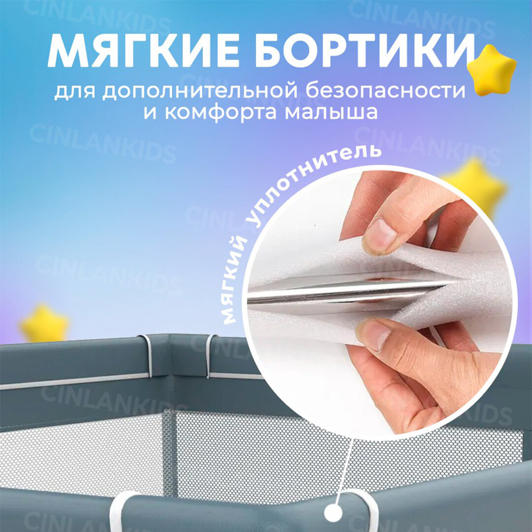 Манеж детский напольный 150х180 см с ковриком и шариками CINLANKIDS