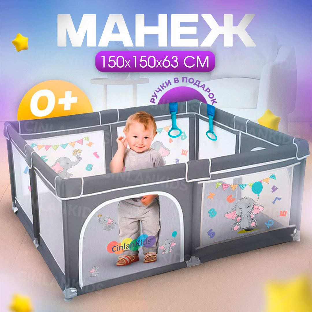 Купить Манеж игровой детский напольный на присосках, 2 ручки-хватайки, 150х150х66 см CINLANKIDS