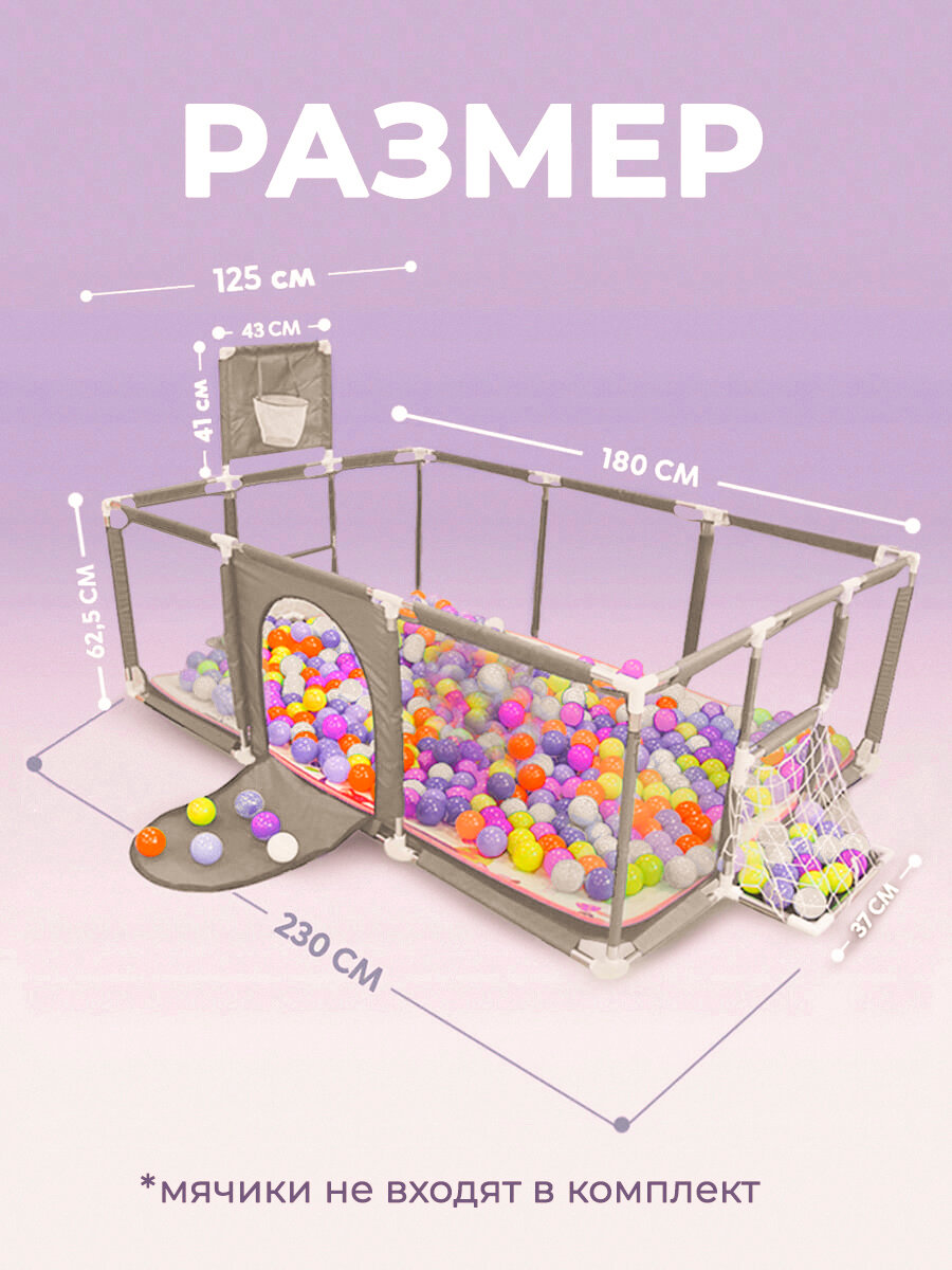 Манеж детский напольный с шариками, ручками и корзиной, 180х125х62 см, CINLANKIDS