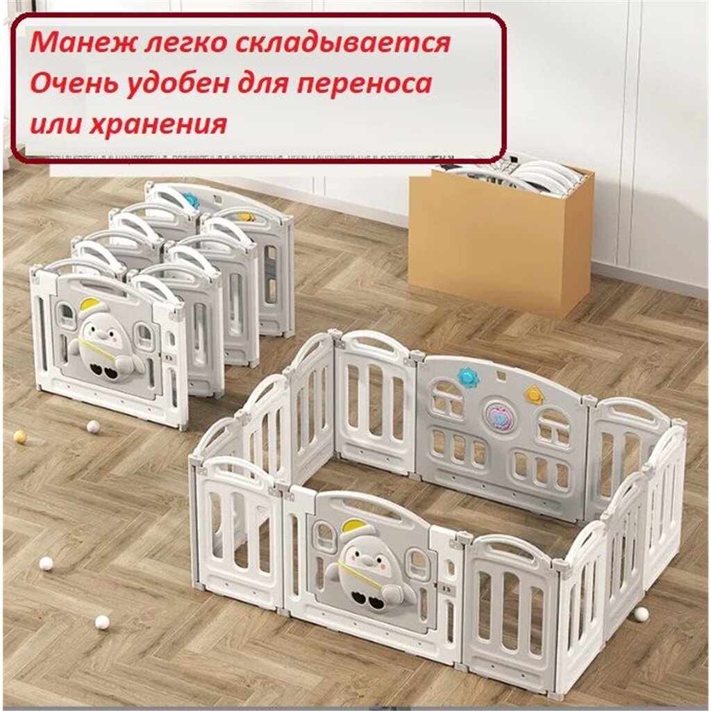 Детский игровой манеж с дверью серый Мишка 110*110cm Манежи Складной интересное: