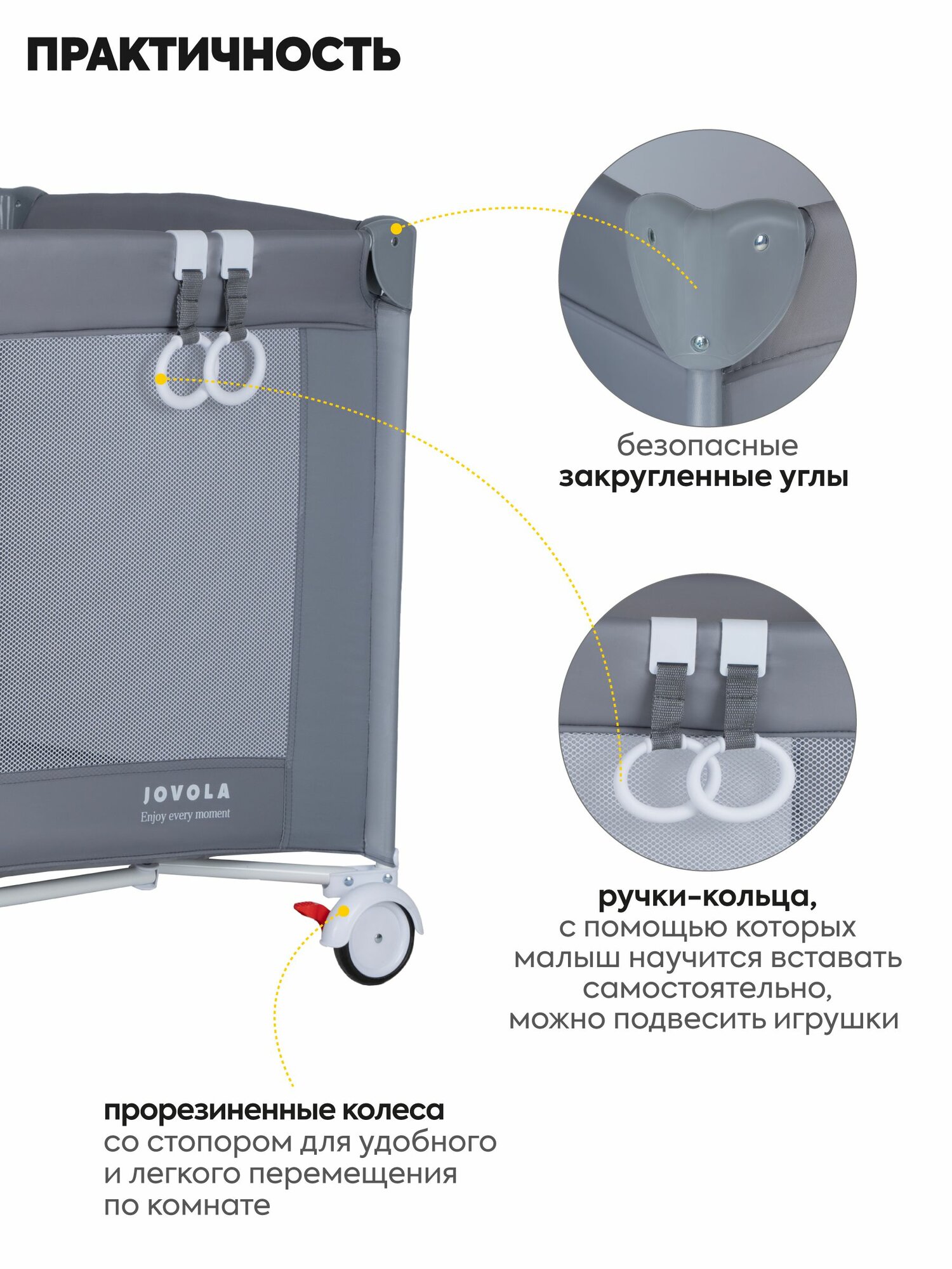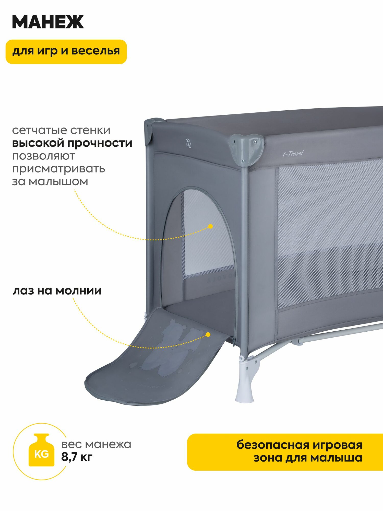 Манеж кровать детский Jovola I-Travel BP01P для новорожденных, 0-36 месяцев, с матрасом, 1 уровень, серый интересное: