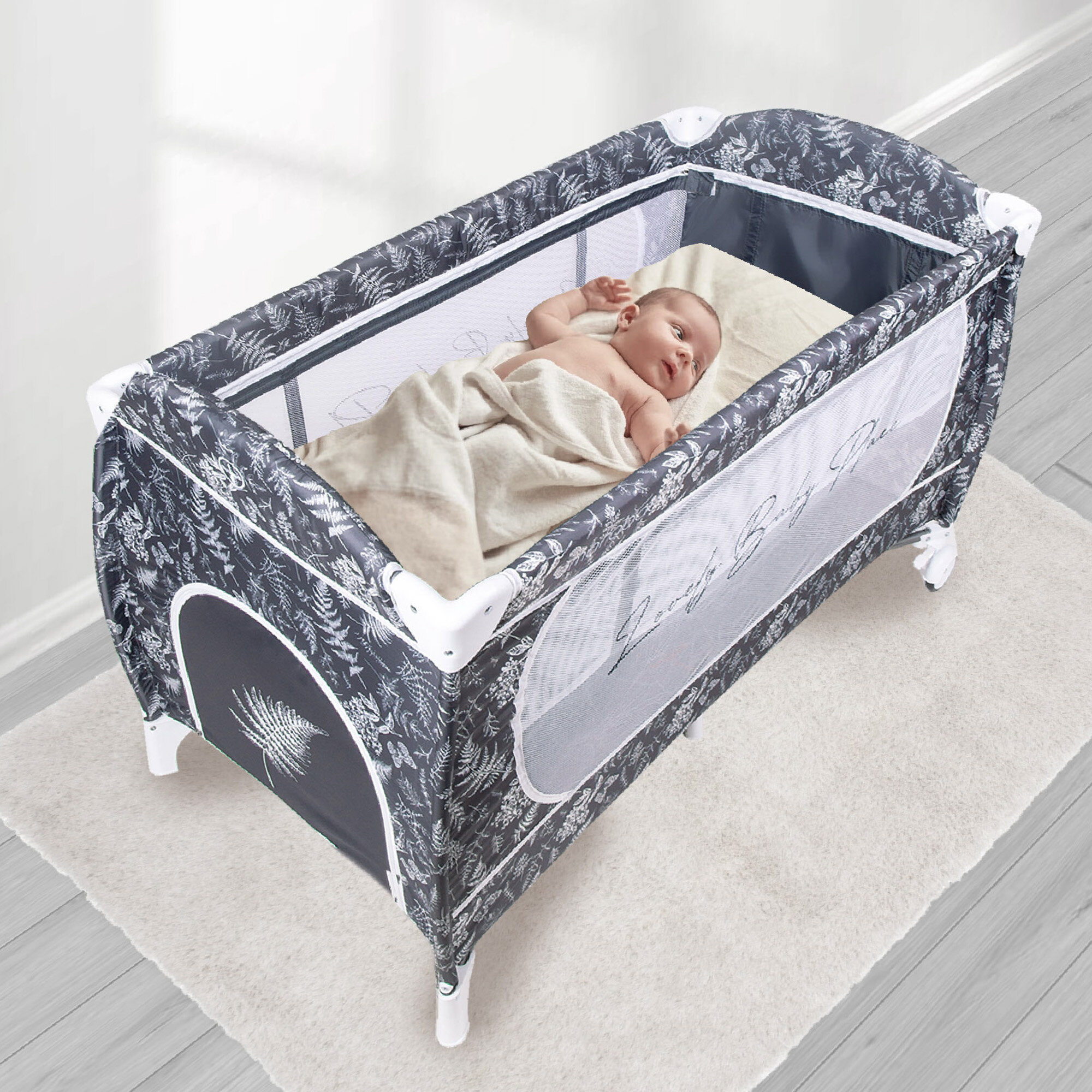 Манеж Amarobaby "HAPPY PLACE", складной, прямоугольный, серый, с дорожным чехлом интересное: