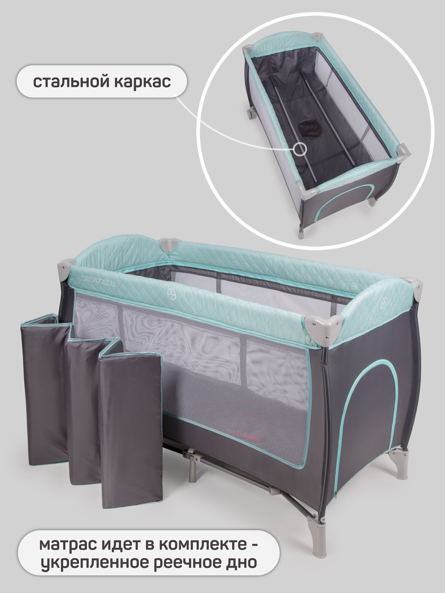 Манеж Amarobaby "HAPPY PLACE", складной, прямоугольный, серый, с дорожным чехлом