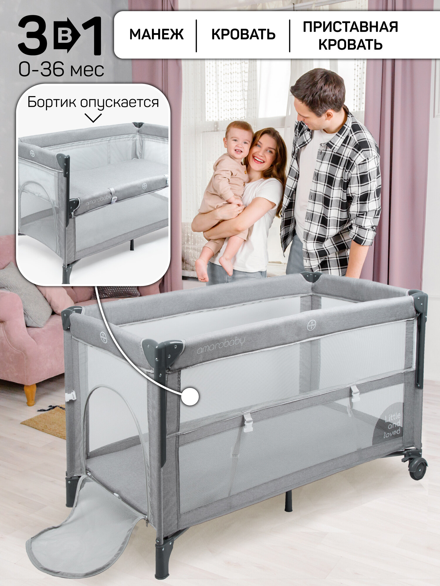 Манеж Amarobaby "TRANSFORM", складная кроватка, серый, с матрасом интересное: