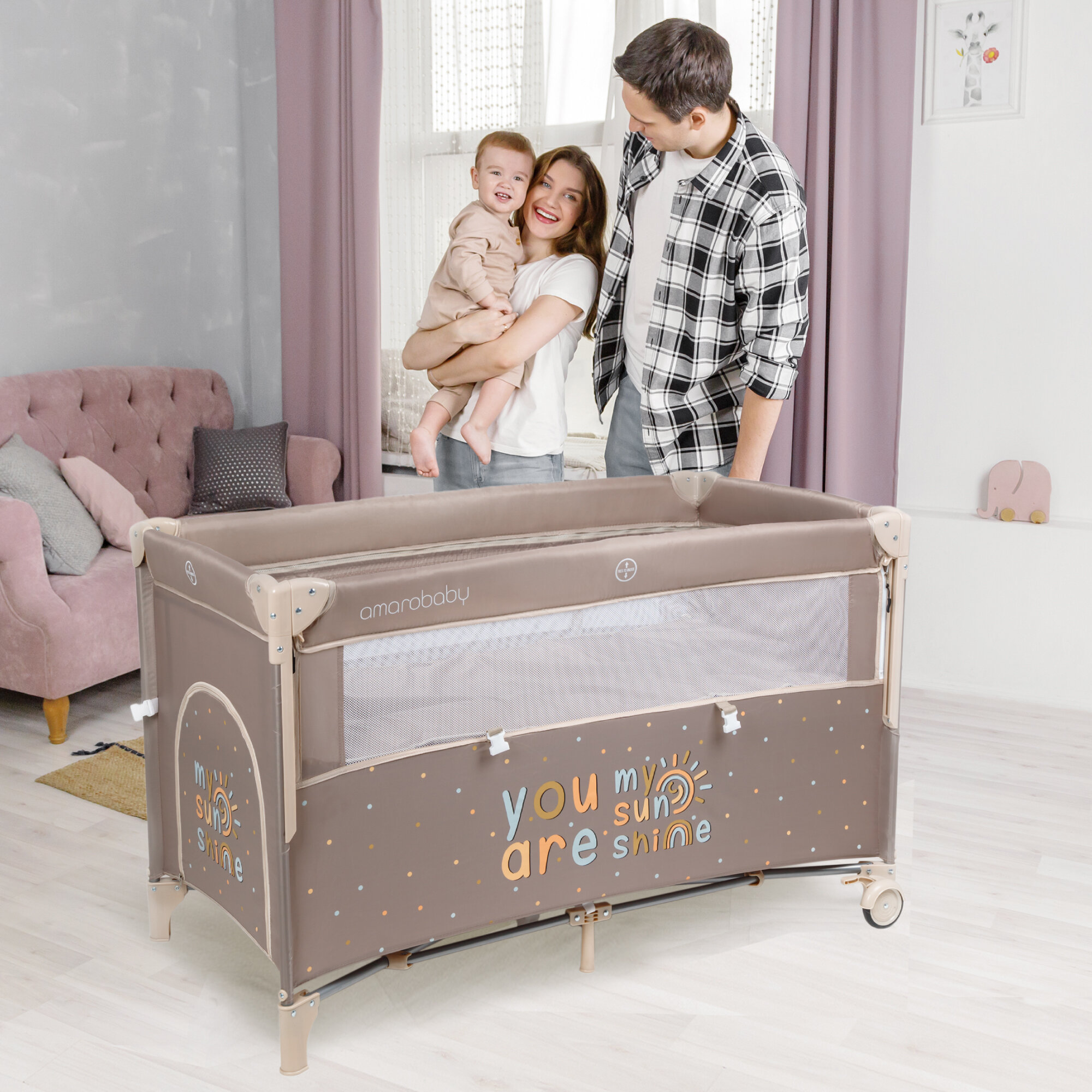 Манеж Amarobaby TRANSFORM, бежевая, складная, для малышей от 0 месяцев