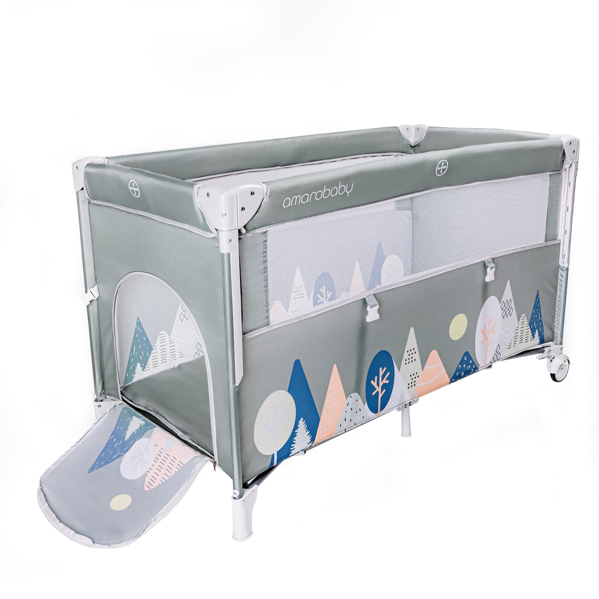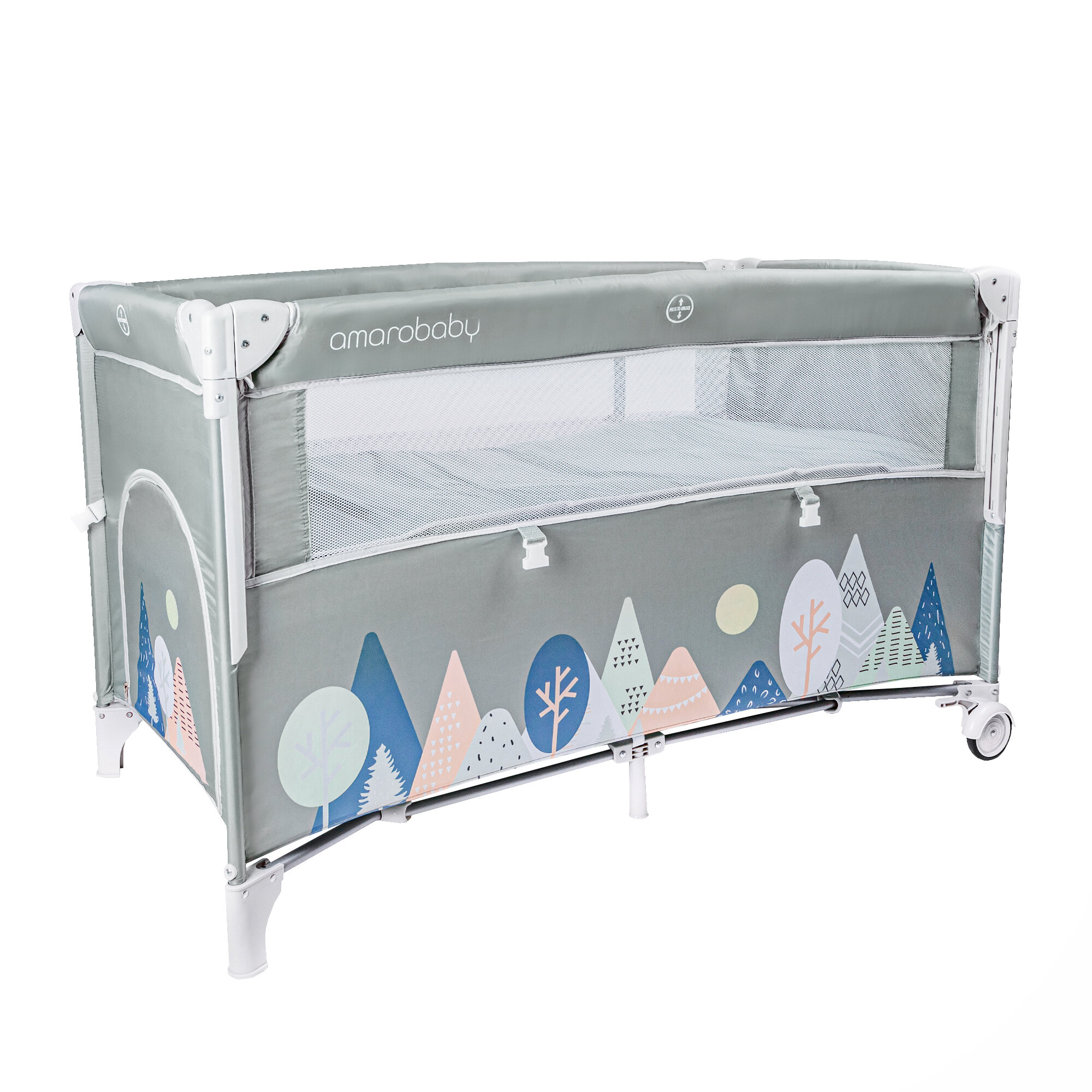 Манеж Amarobaby "TRANSFORM", складная кроватка, серый, с матрасом