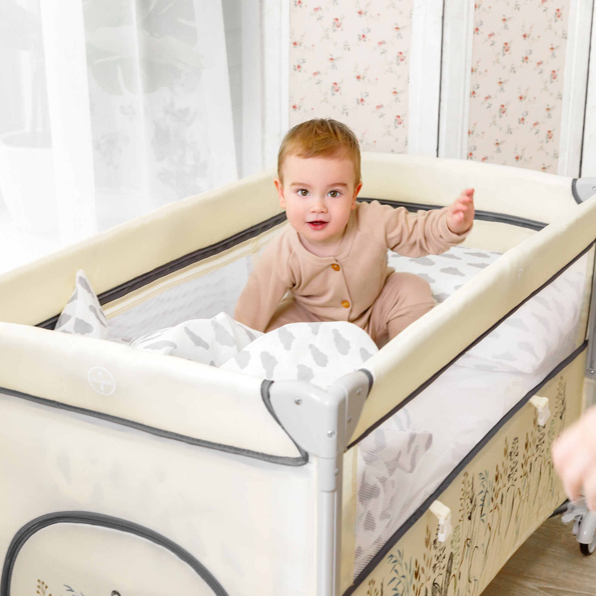 Манеж Amarobaby TRANSFORM, бежевая, складная, для малышей от 0 месяцев
