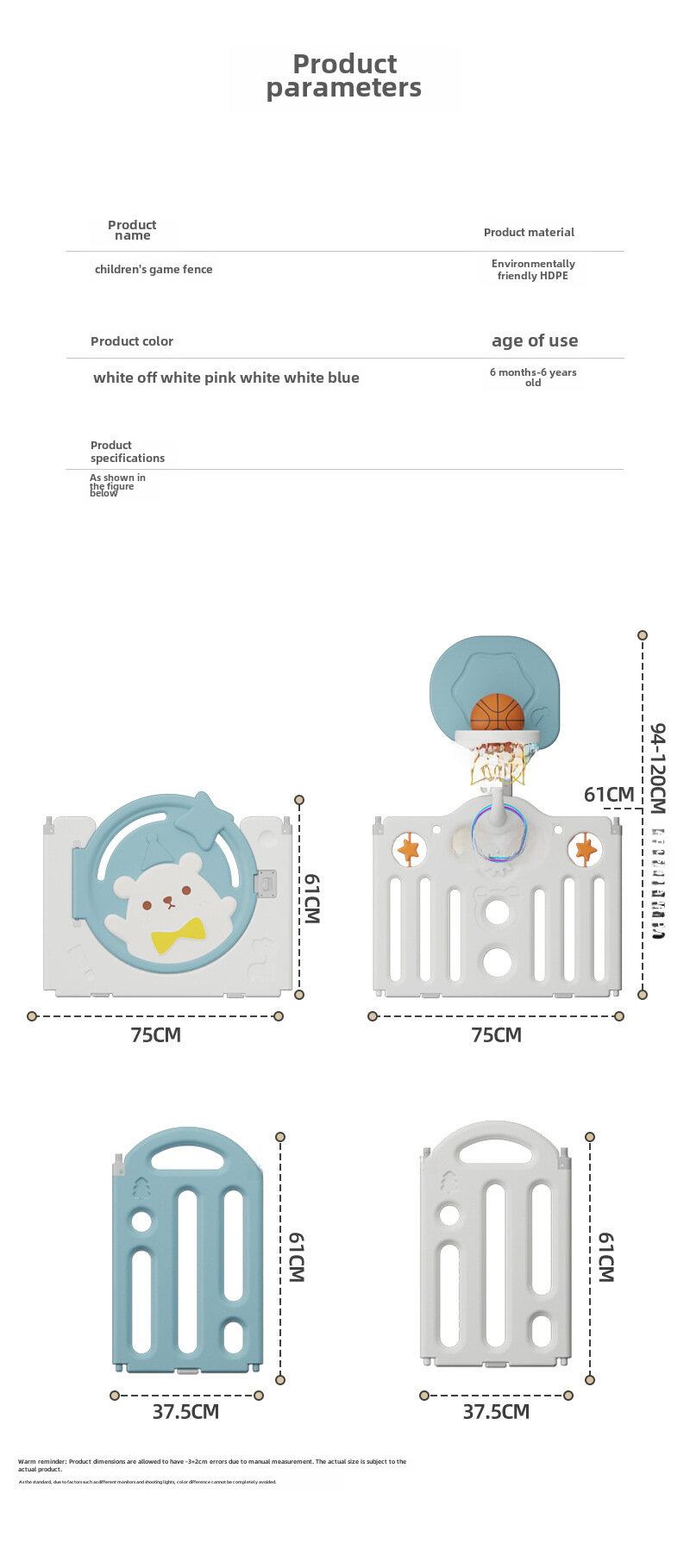 Ограждение для игр Beep Bear, медвежья изгородь, пластик, для детей 3-6 лет
