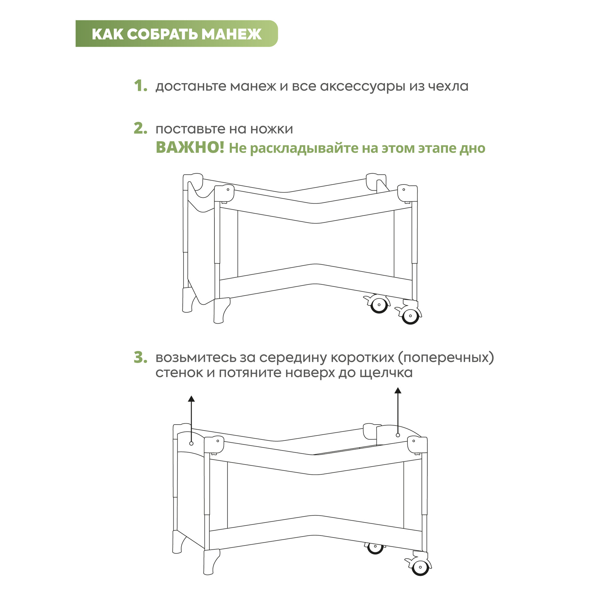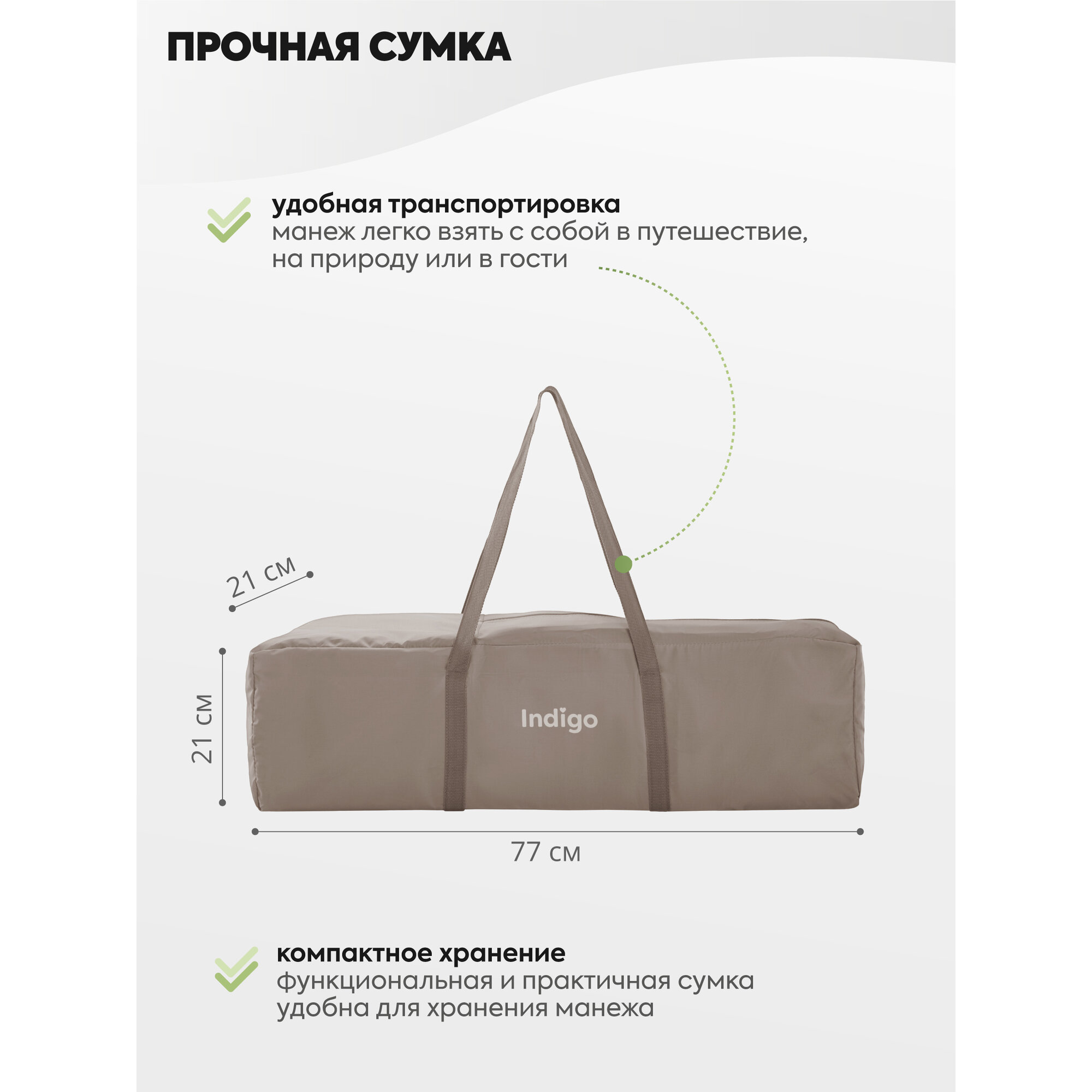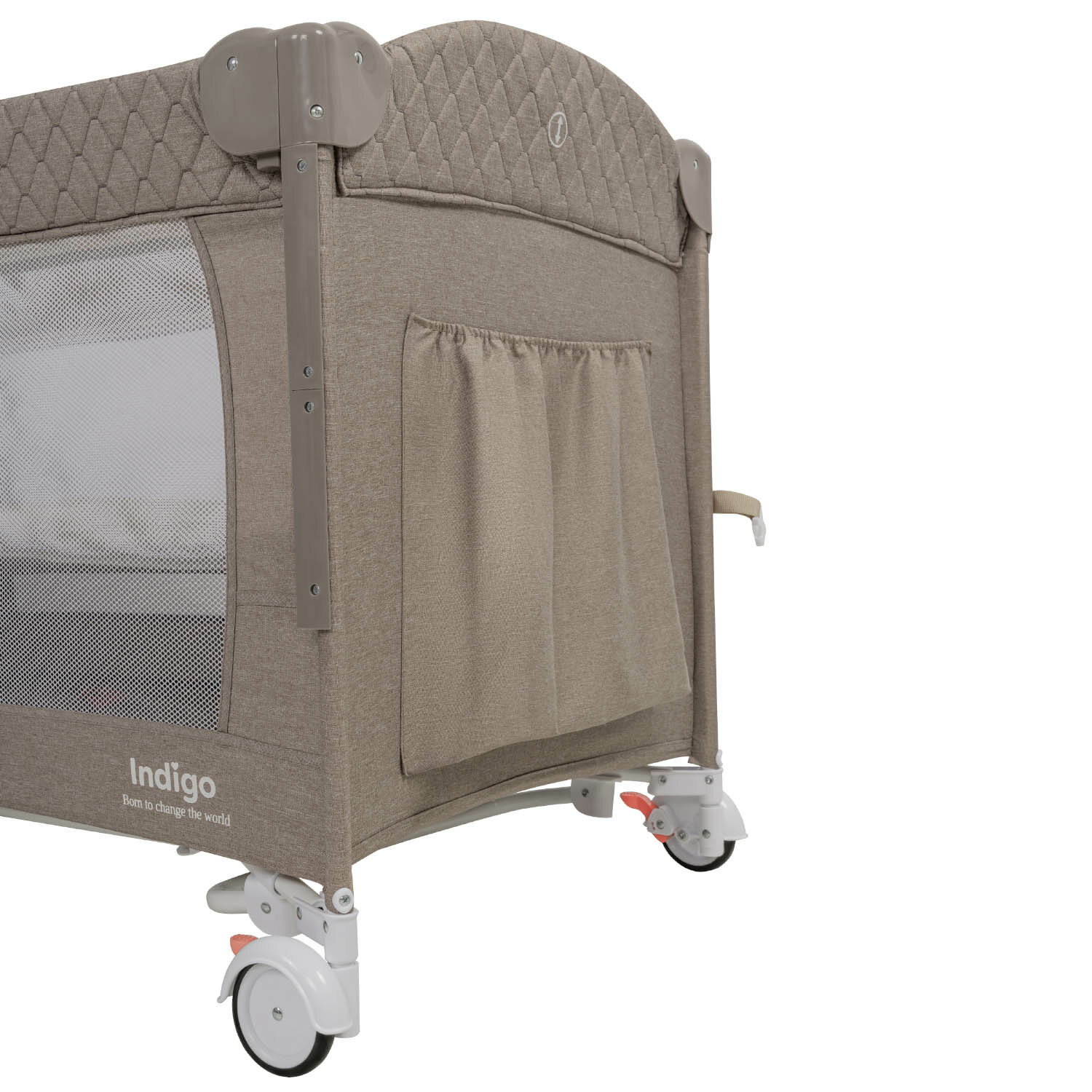 Манеж, кровать и кроватка приставная 3 в 1 Indigo Bon-Bon PN02, 2 уровня, с рождения, с сумкой переноской, светло-серый