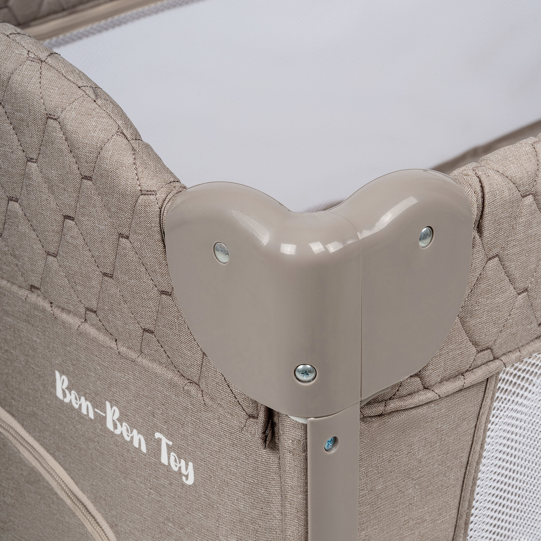 Манеж, кровать и кроватка приставная для новорожденных 3 в 1 Indigo Bon-Bon TOY, 2 уровня, маятник, игрушки, св. бежевый