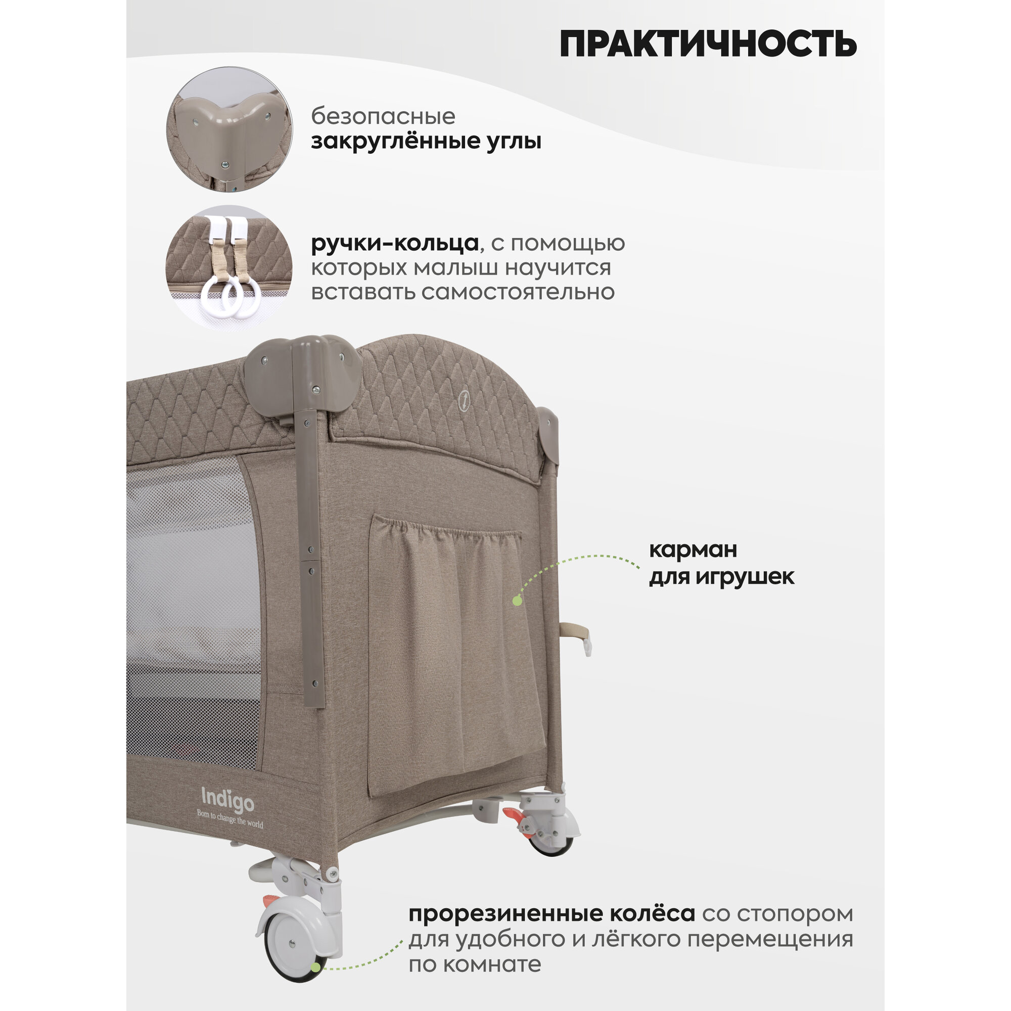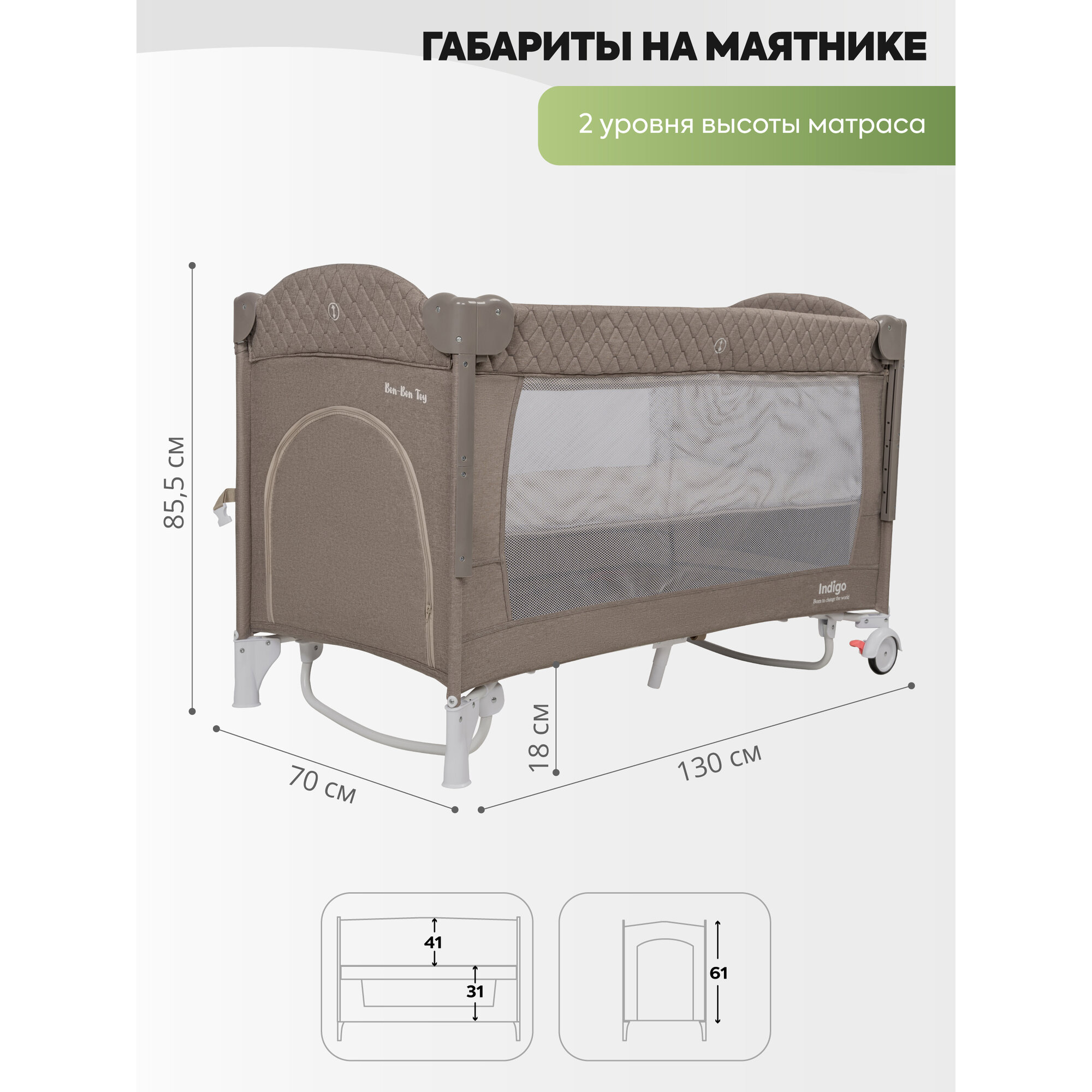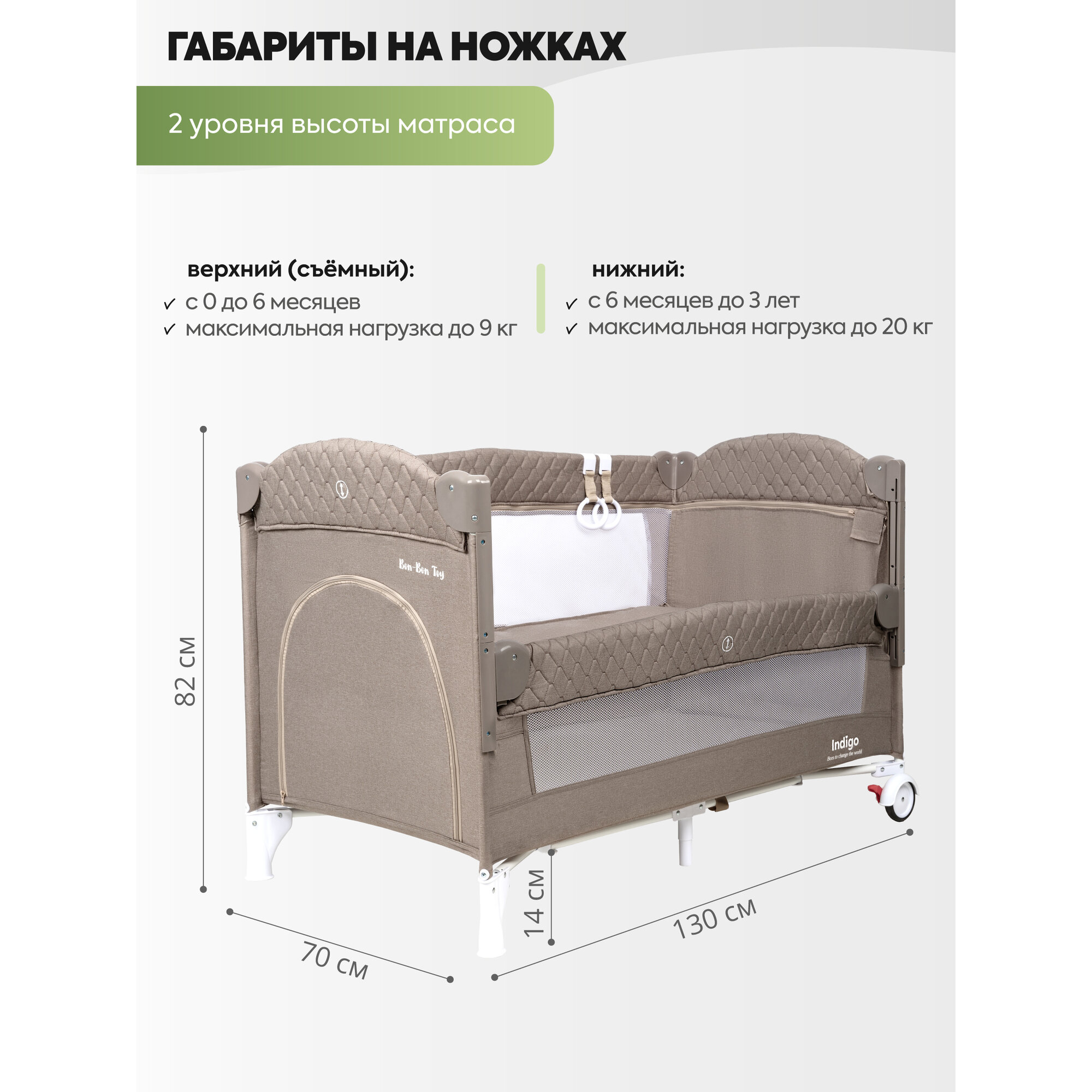 СохранитьМанеж, кровать и кроватка приставная для новорожденных 3 в 1 Indigo Bon-Bon TOY, 2 уровня, маятник, игрушки, бежевый интересное: