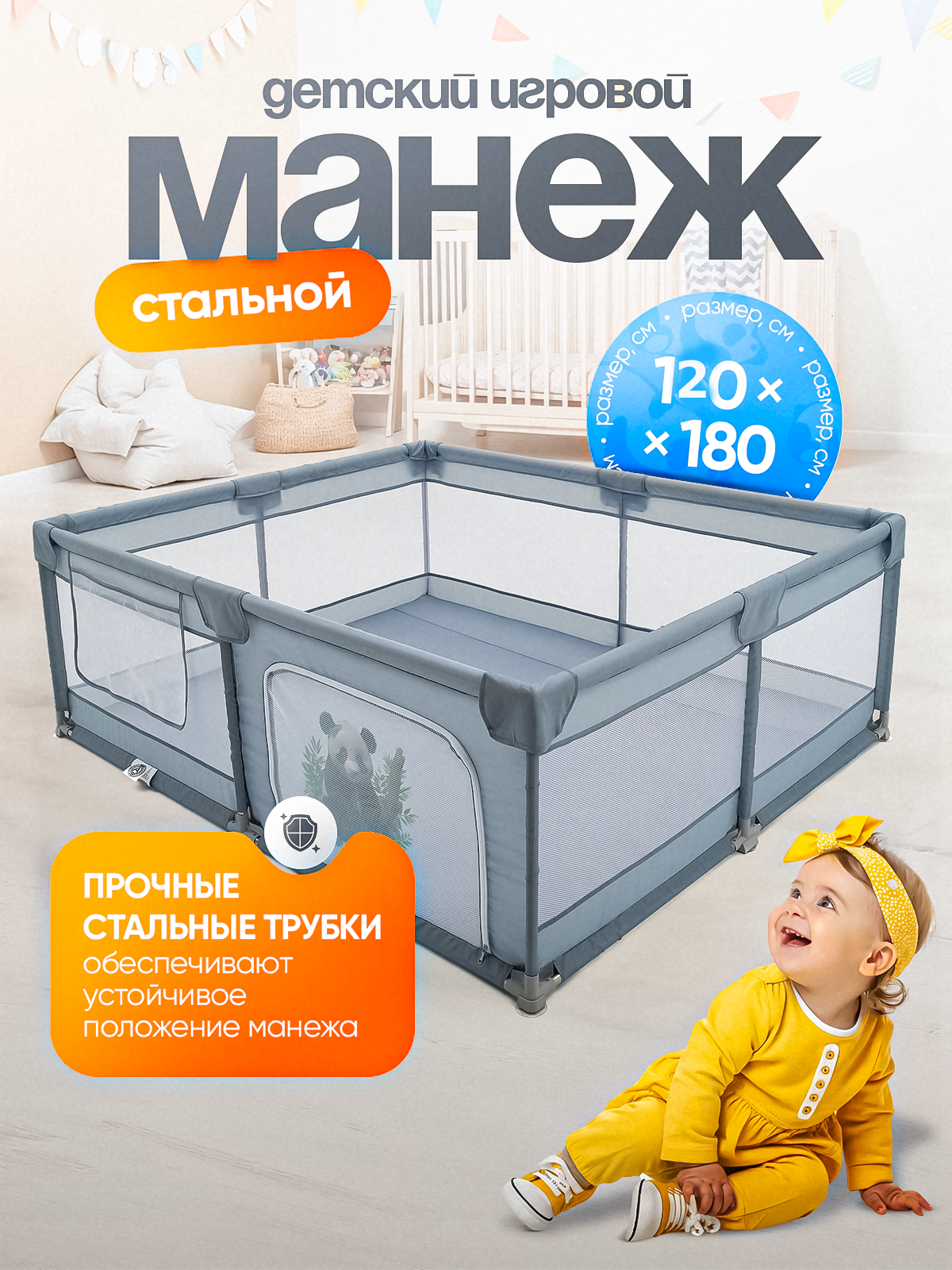 СохранитьAelita, Манеж детский игровой Milo 120x180 на присосках каркас сталь(панда). Сухой бассейн для малыша и новорожденных интересное: