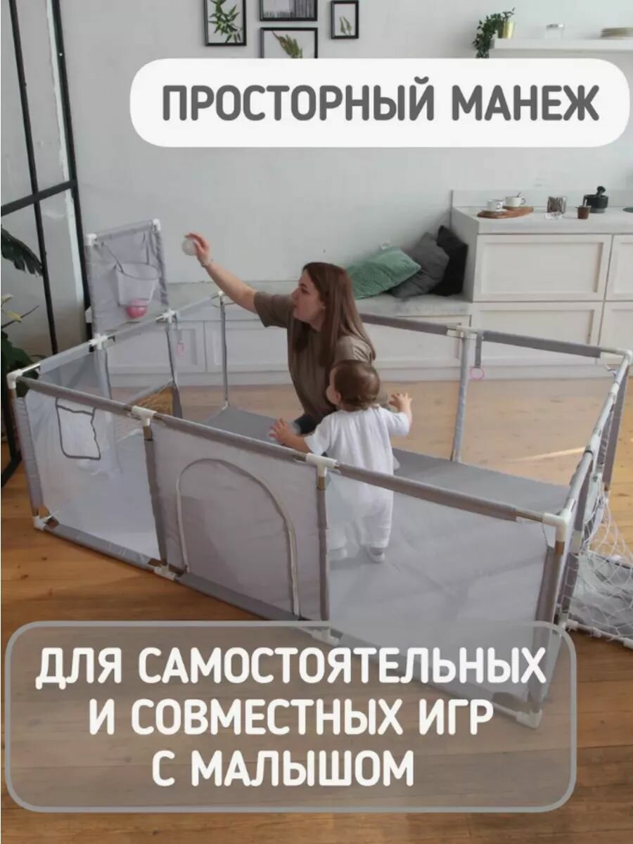 Манеж детский напольный игровой с воротами и корзиной интересное: