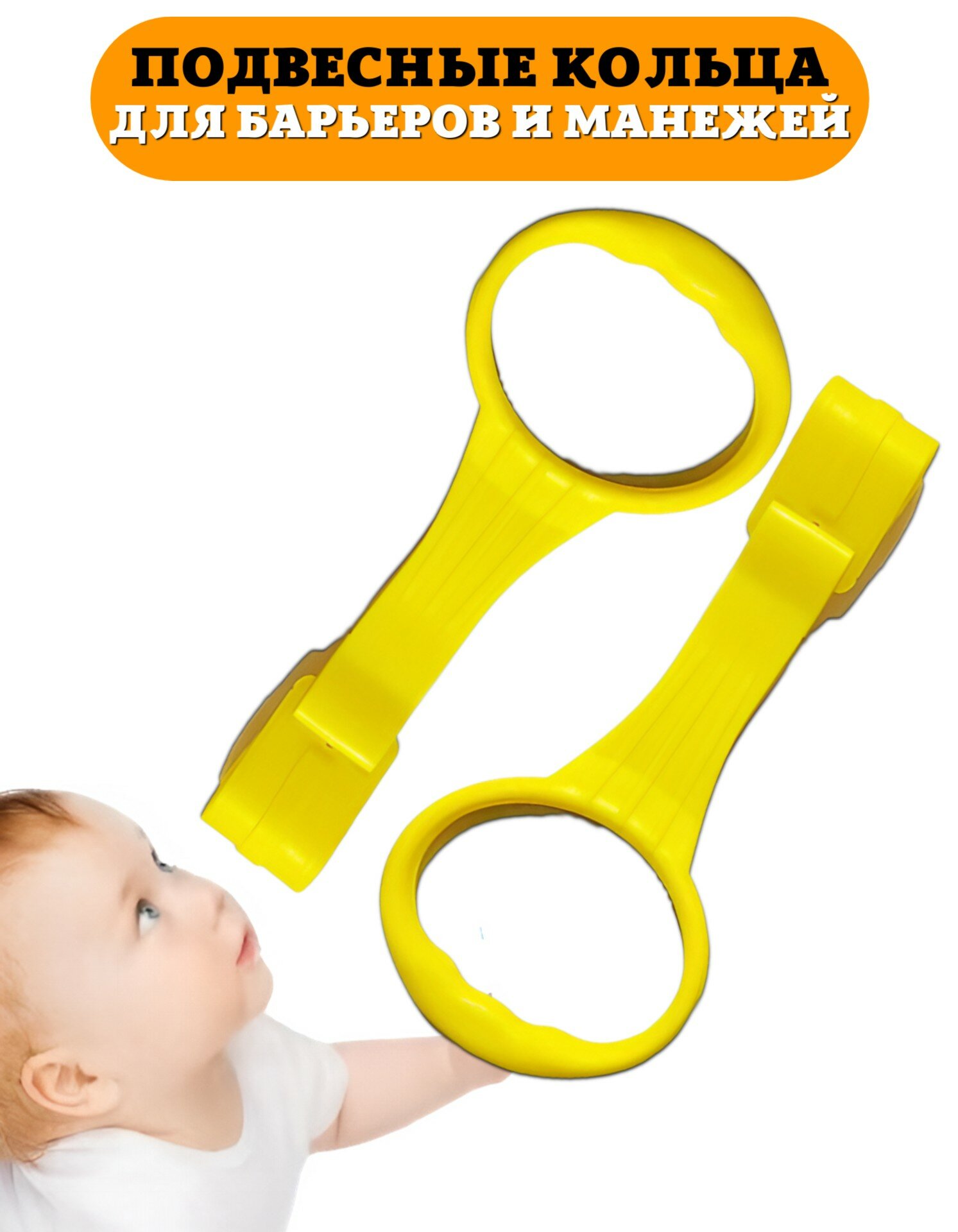 Пластиковые кольца Floopsi для манежа или защитного барьера, цв. желтый, 2 шт. Ручки для манежа или барьера, подвесное кольцо интересное: