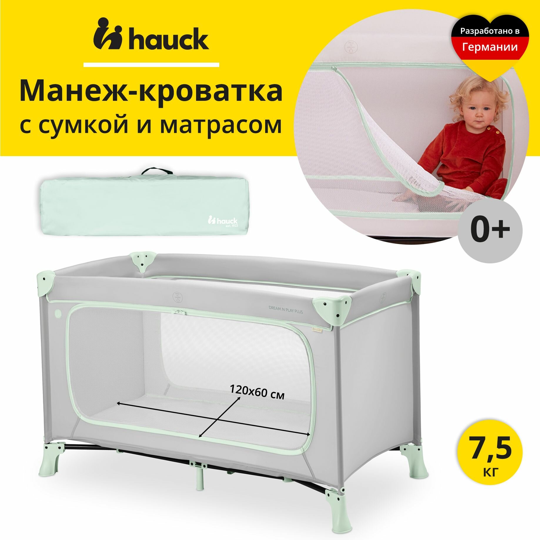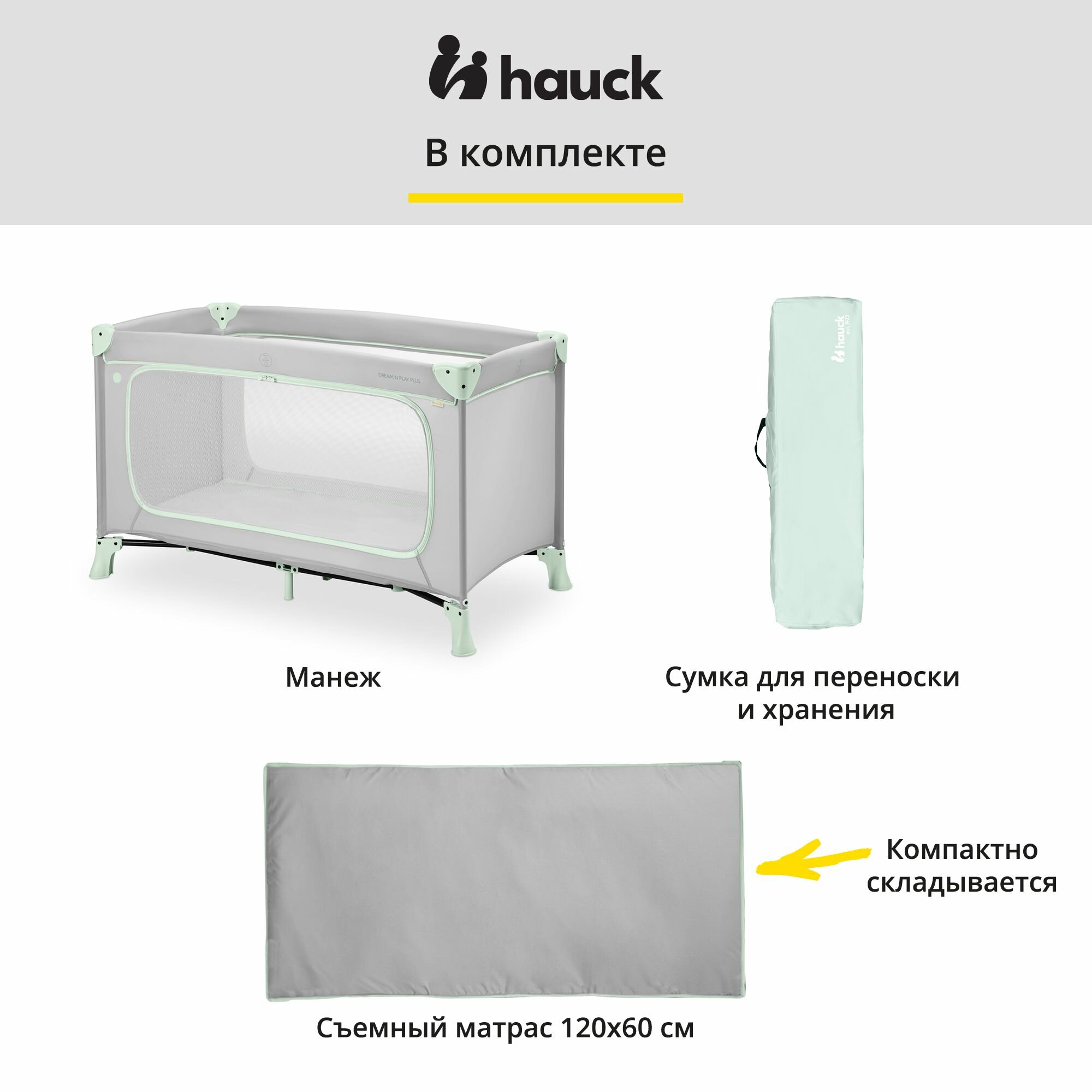 Манеж - кровать детский Hauck Dream N Play Plus Dusty Mint, складной с матрасом 120х60 см и боковым лазом, серо-мятный интересное: