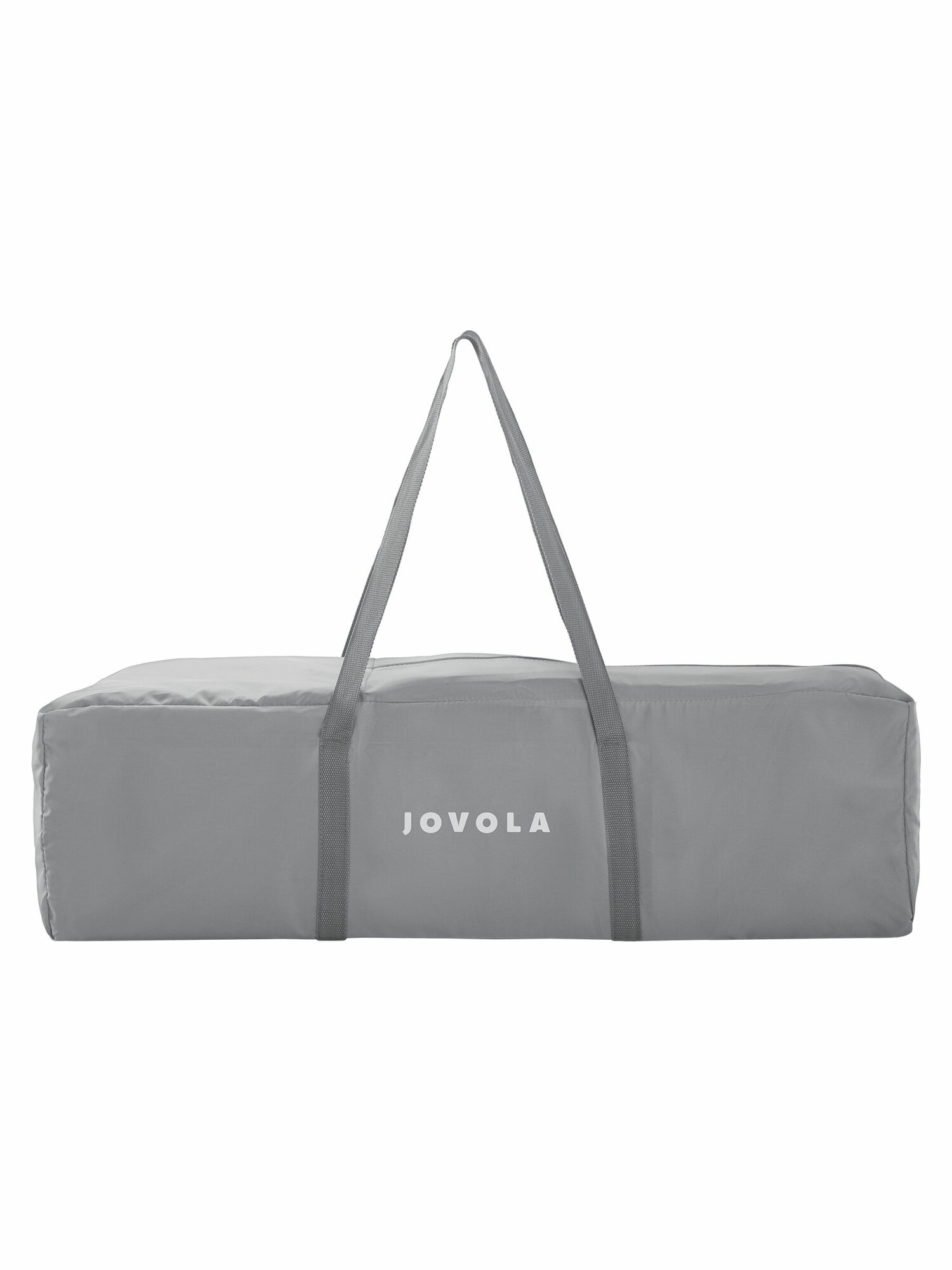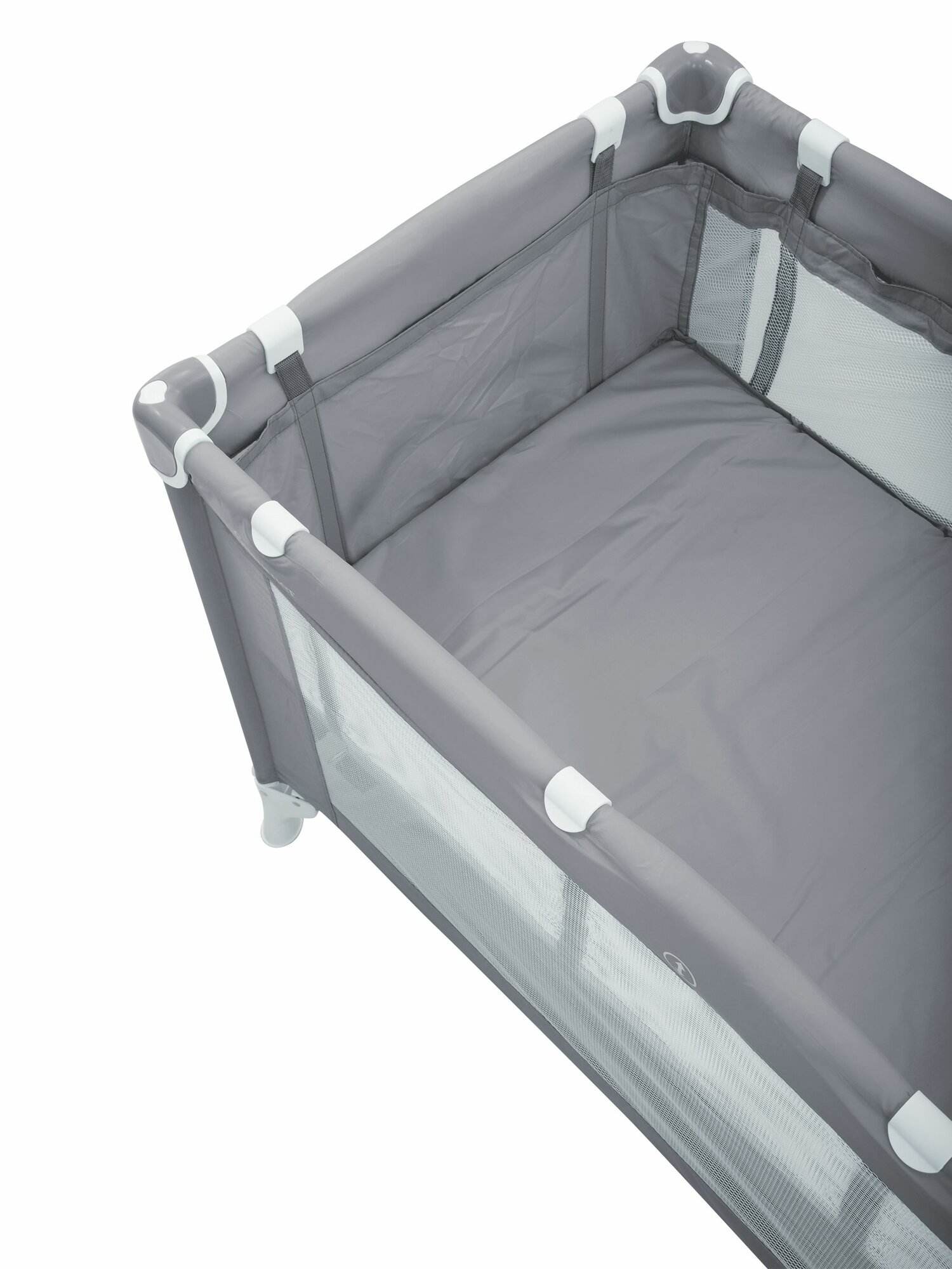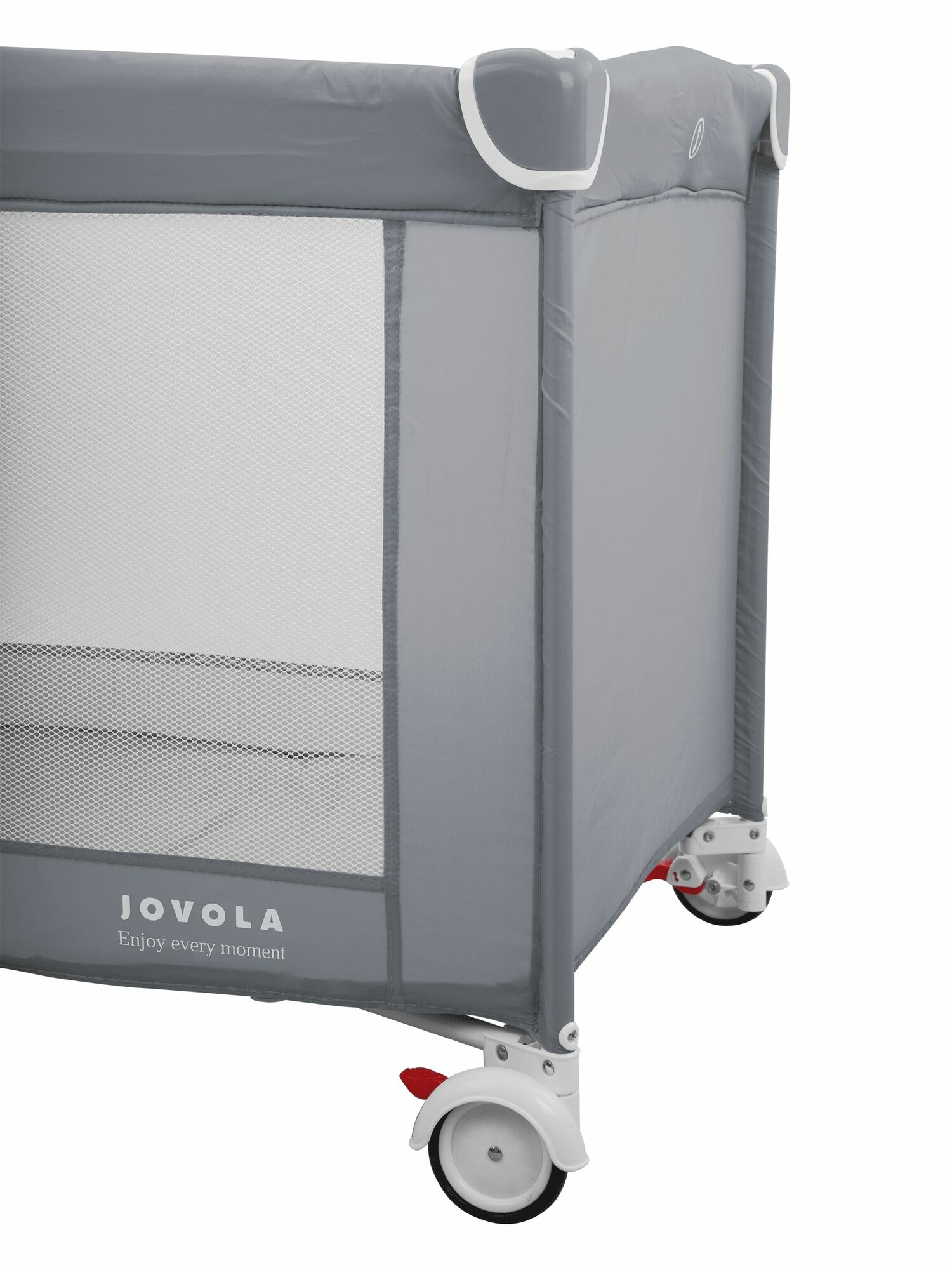 Манеж кровать детский JOVOLA AMICO, для новорожденных с матрасом и москитной сеткой, складной, 2 уровня, светло-серый