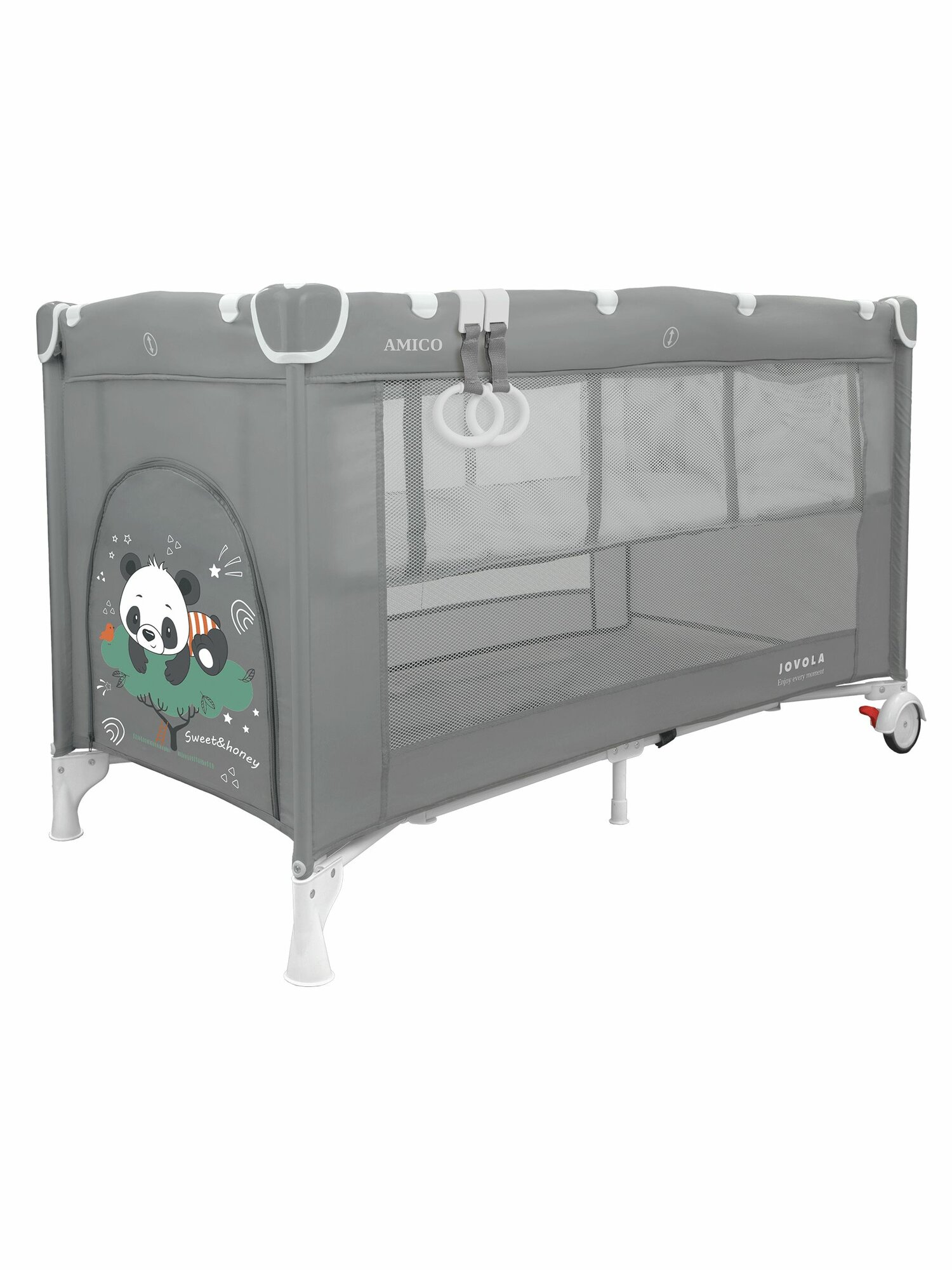 Купить Манеж кровать детский JOVOLA AMICO, для новорожденных с матрасом и москитной сеткой, складной, 2 уровня, 2 уровня, серый