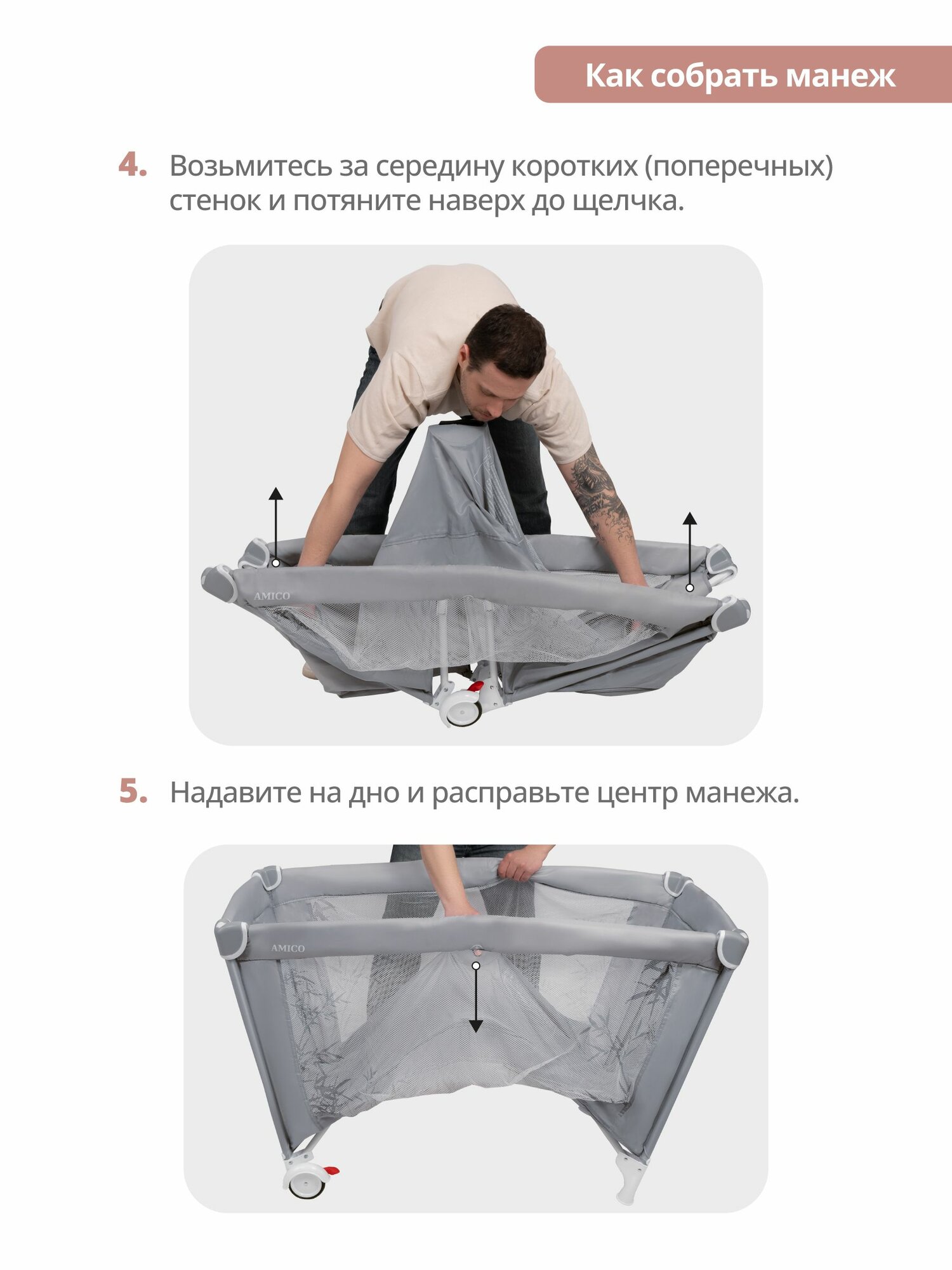 Манеж кровать детский JOVOLA AMICO, для новорожденных с матрасом и москитной сеткой, складной, 2 уровня, светло-серый