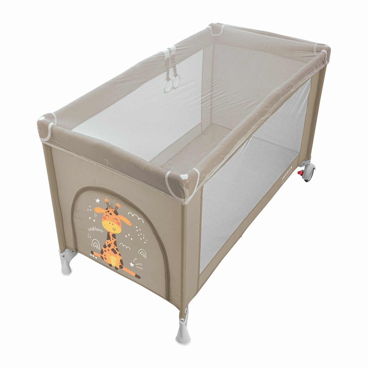 Купить Манеж кровать детский JOVOLA AMICO, для новорожденных с матрасом и москитной сеткой, складной, 2 уровня, 2 уровня, бежевый