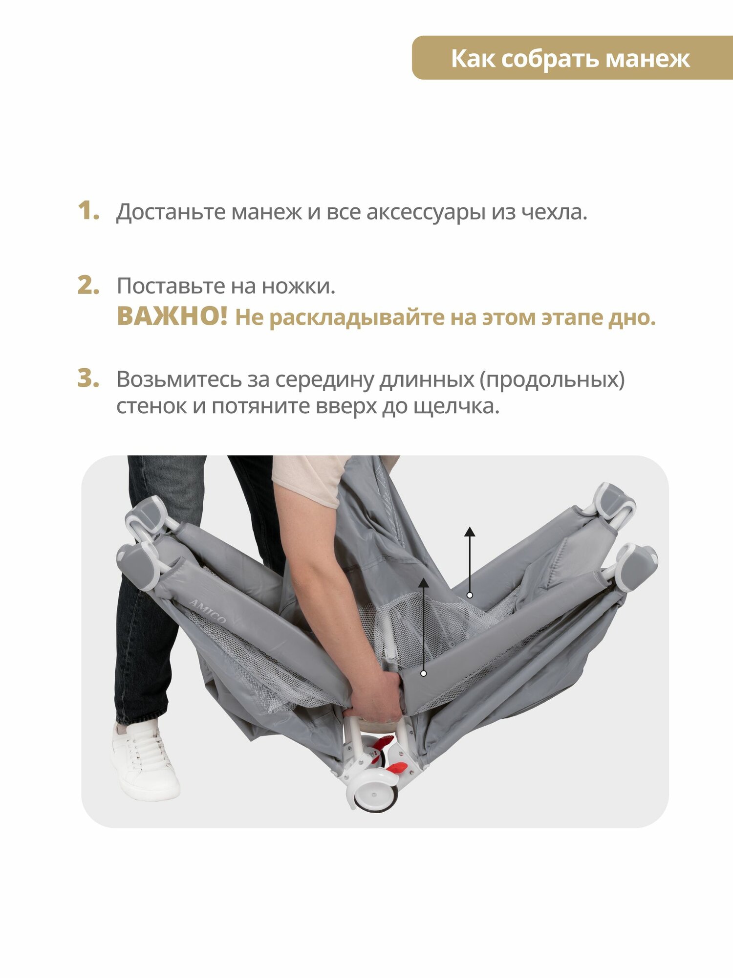 Манеж кровать детский JOVOLA AMICO, для новорожденных с матрасом и москитной сеткой, складной, 2 уровня, 2 уровня, бежевый