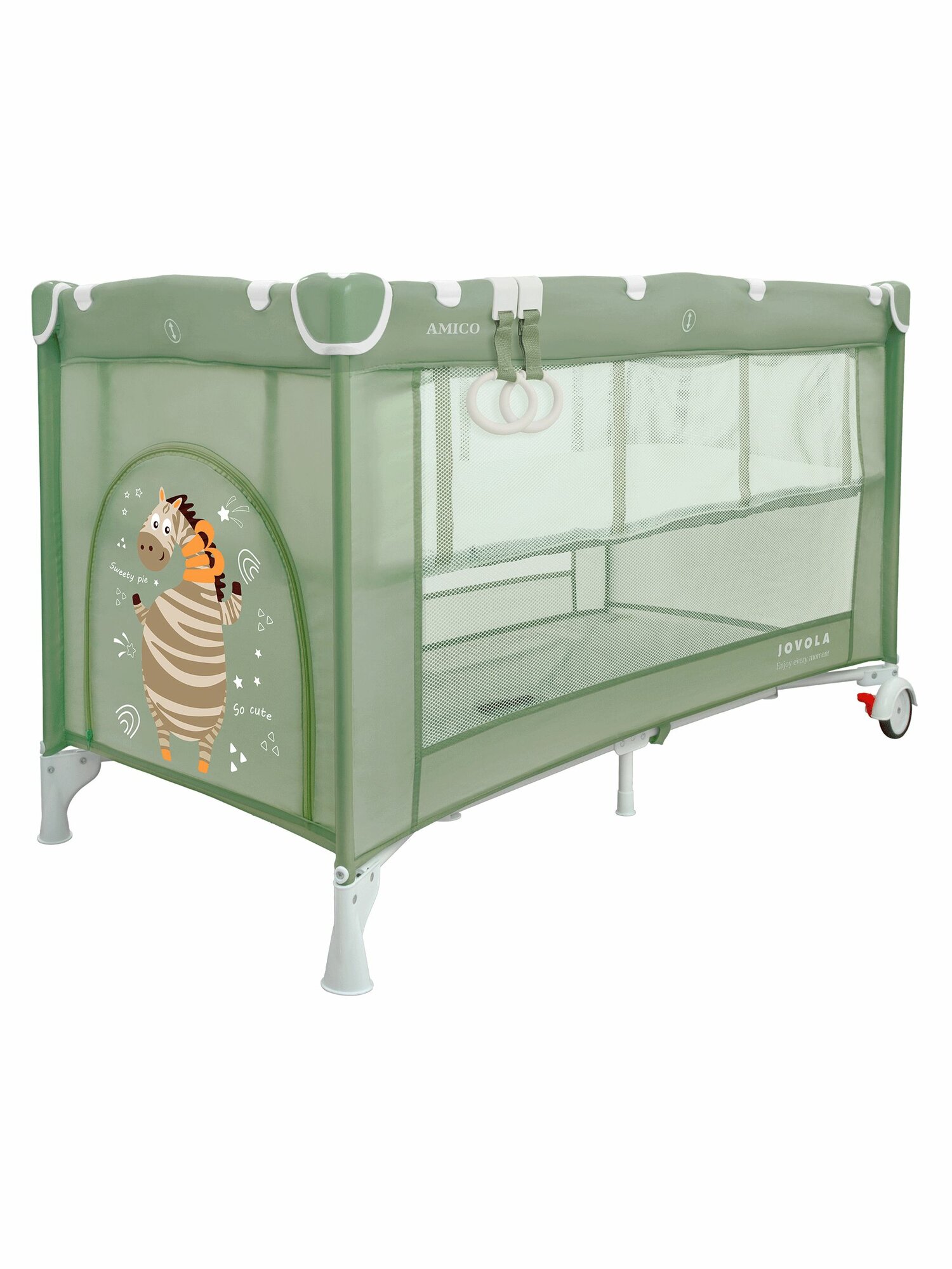 Купить Манеж кровать детский JOVOLA AMICO, для новорожденных с матрасом и москитной сеткой, складной, 2 уровня, зеленый
