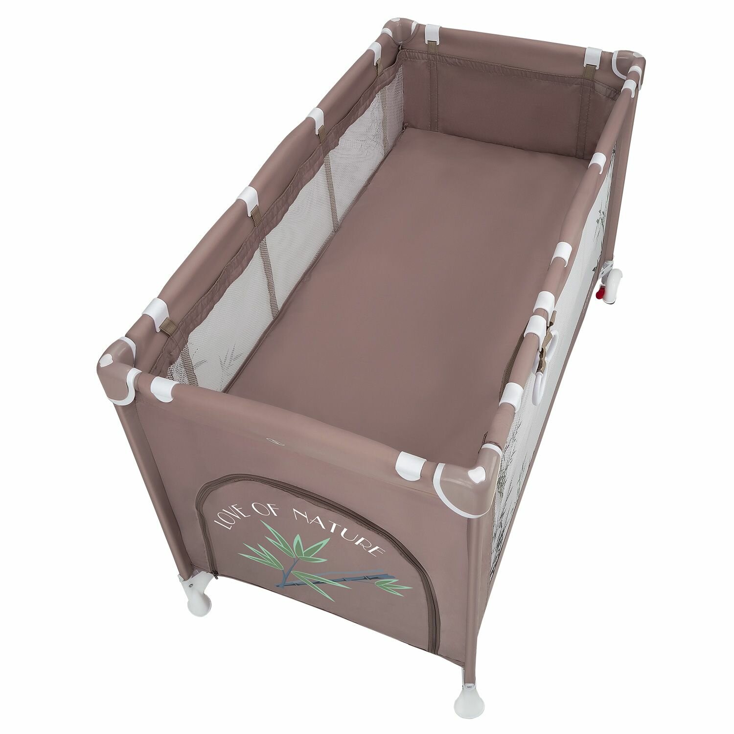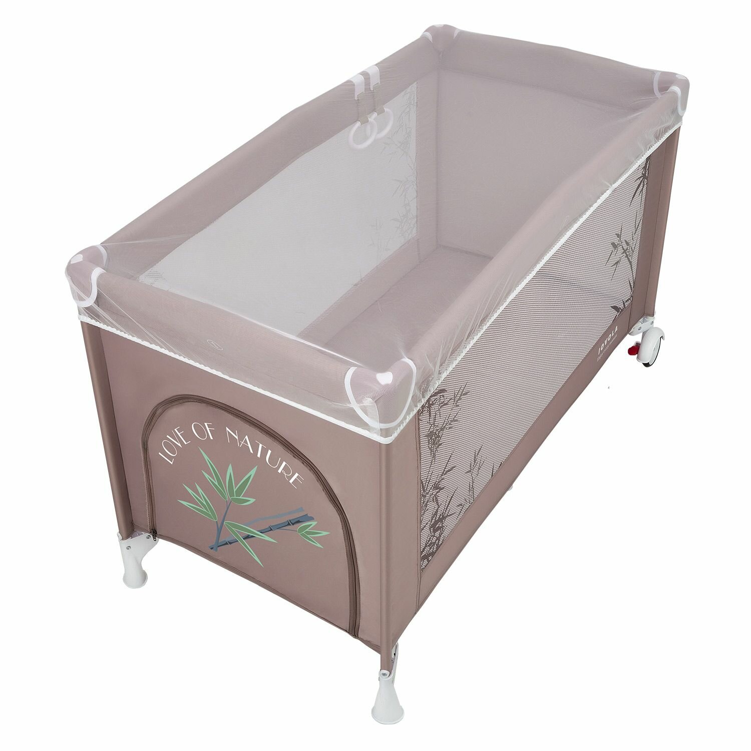 Купить Манеж кровать детский JOVOLA AMICO, для новорожденных с матрасом и москитной сеткой, складной, 2 уровня, бежевый бамбук (мокко)