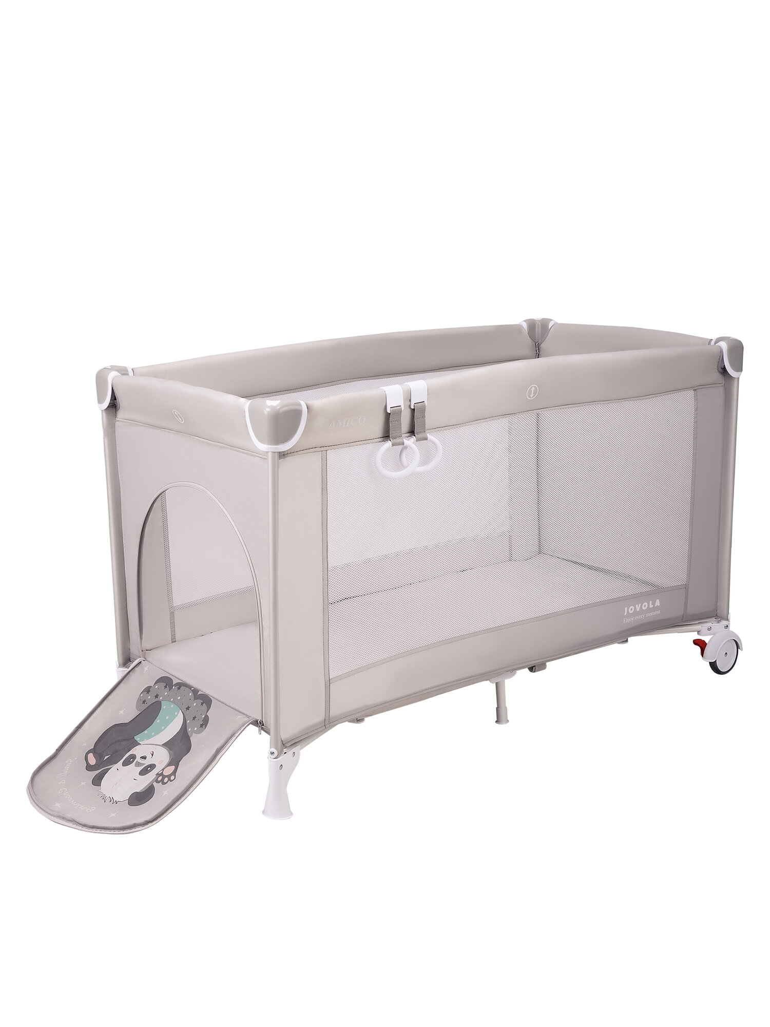 Купить Манеж кровать детский JOVOLA AMICO, для новорожденных с матрасом и москитной сеткой, складной, 2 уровня, светло-серый