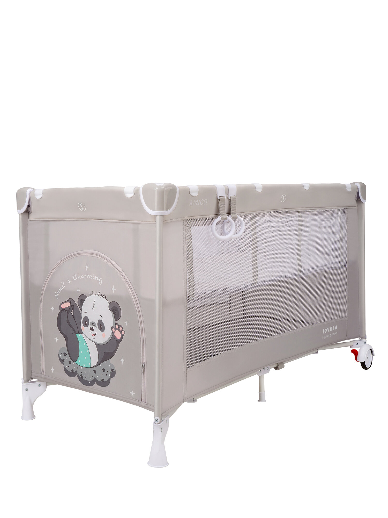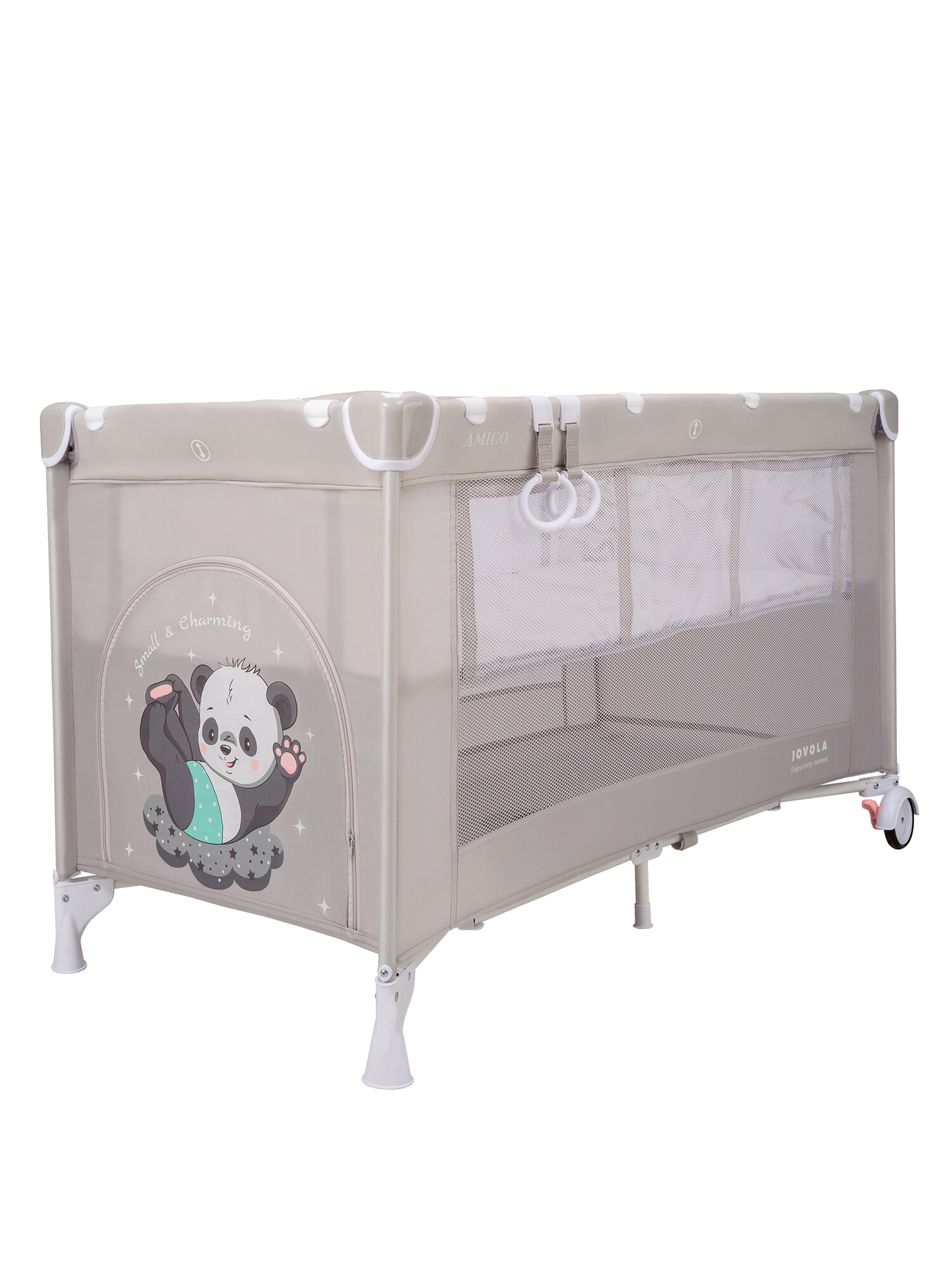 Манеж кровать детский JOVOLA AMICO, для новорожденных с матрасом и москитной сеткой, складной, 2 уровня, 2 уровня, серый