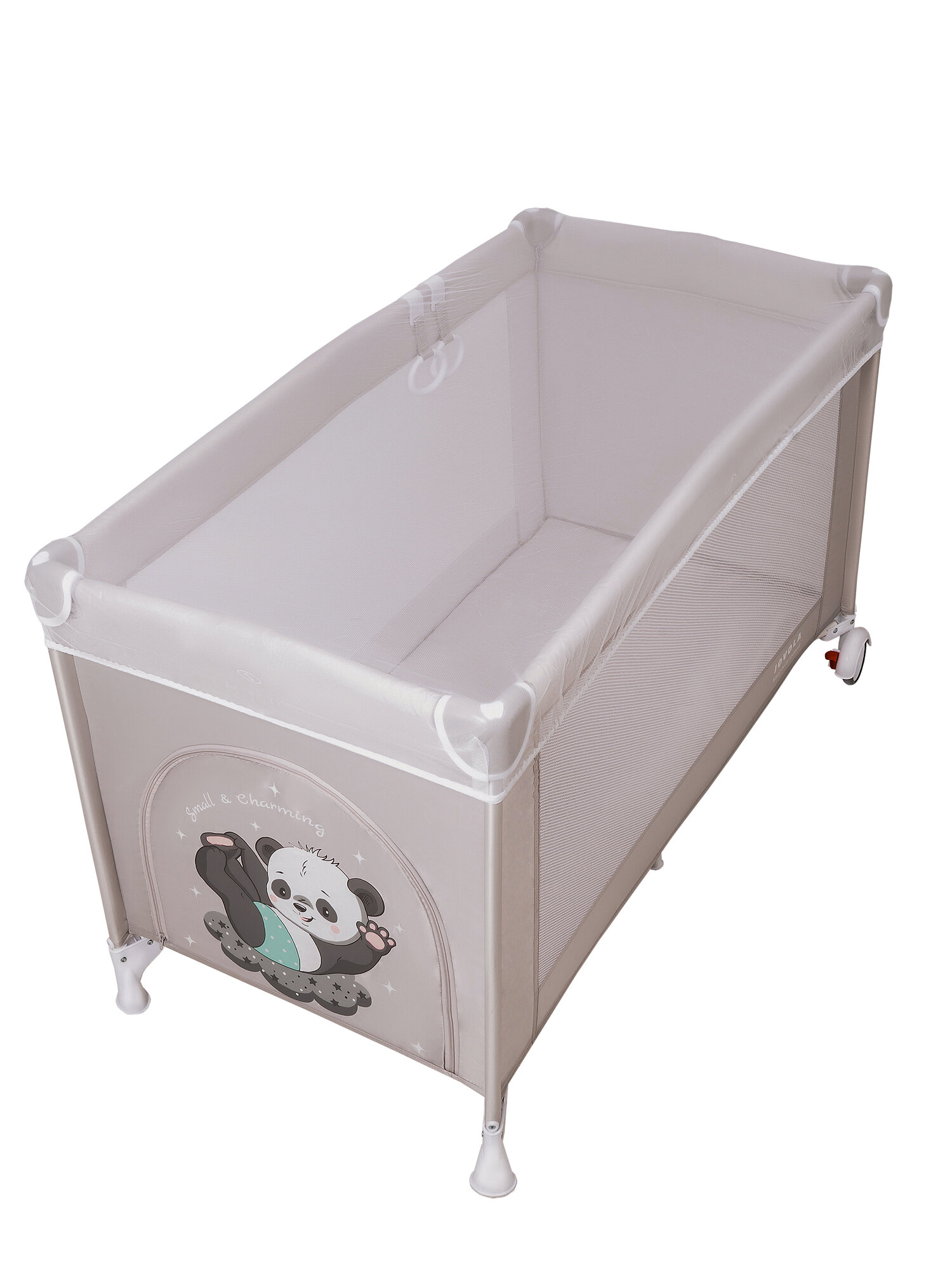 Манеж кровать детский JOVOLA AMICO, для новорожденных с матрасом и москитной сеткой, складной, 2 уровня, 2 уровня, бежевый