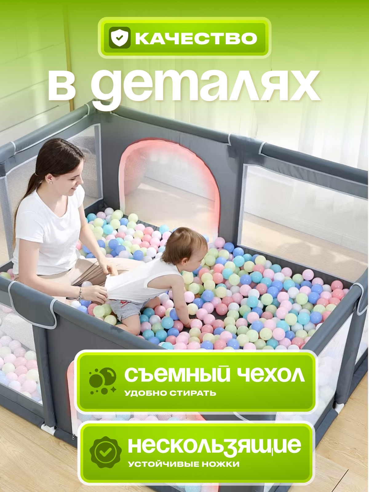 Манеж детский игровой 200*200 см на присосках, темно-серый, сухой бассейн интересное: