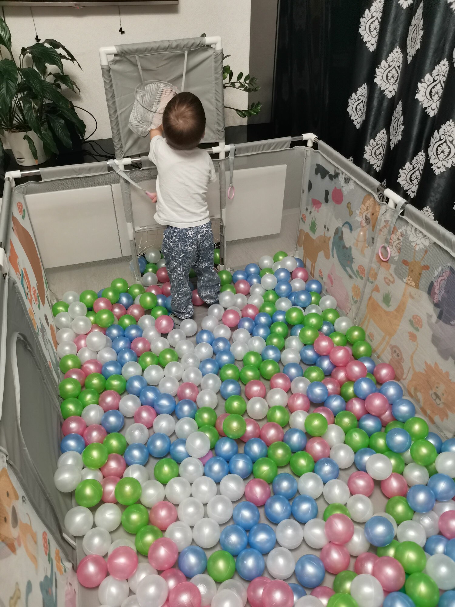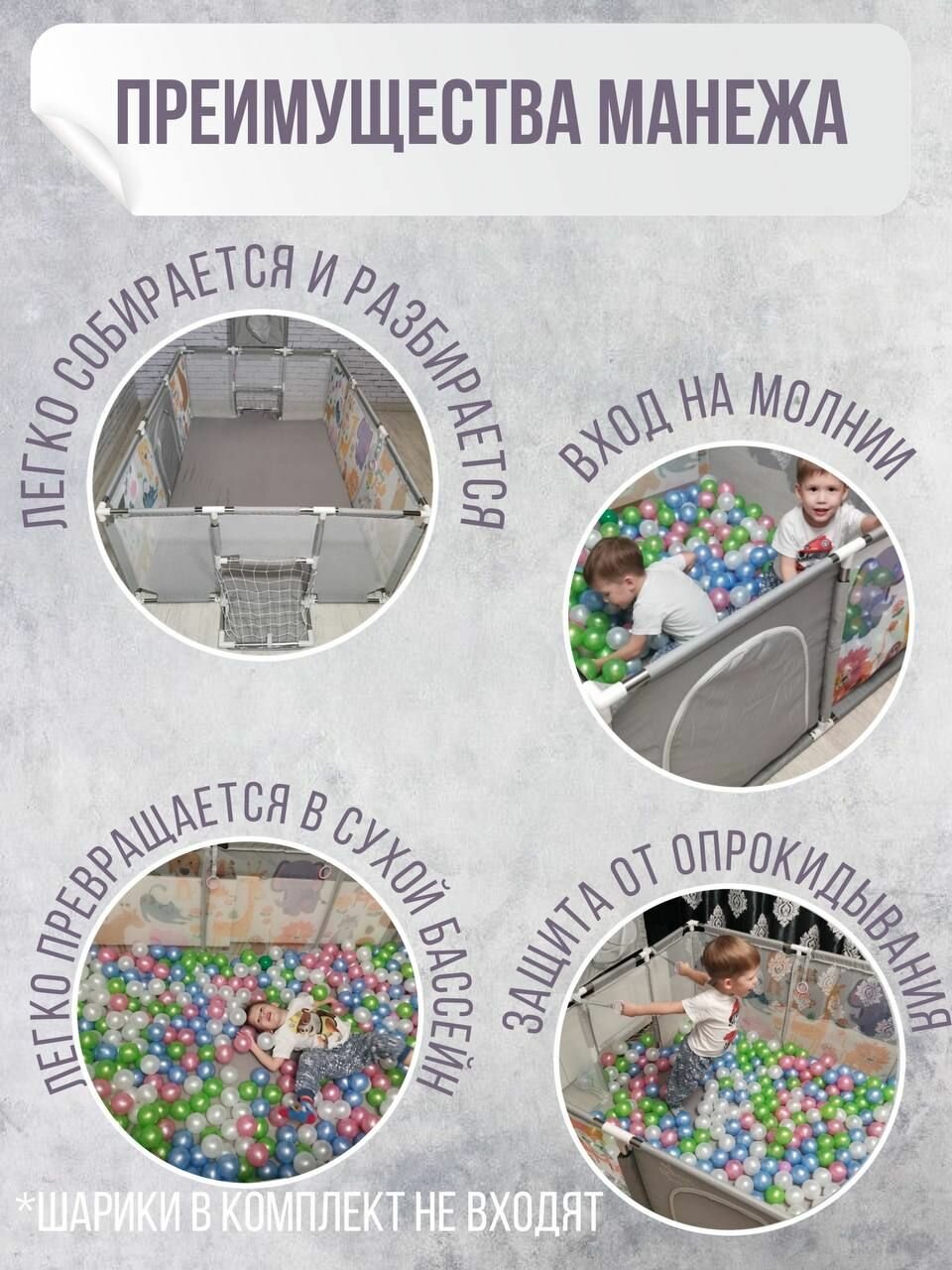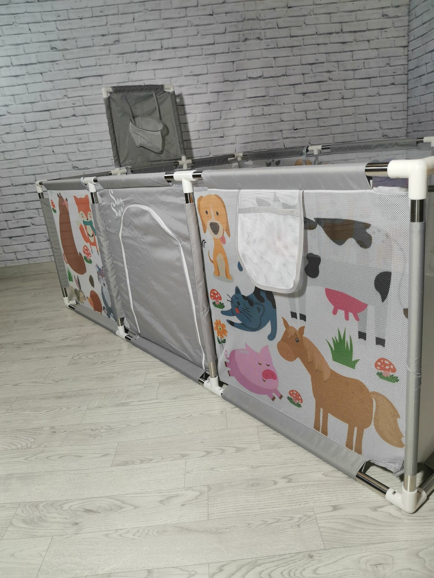 Манеж детский напольный игровой большой с футбольными воротами и баскетбольным кольцом серый с рисунком Safely & Soft интересное: