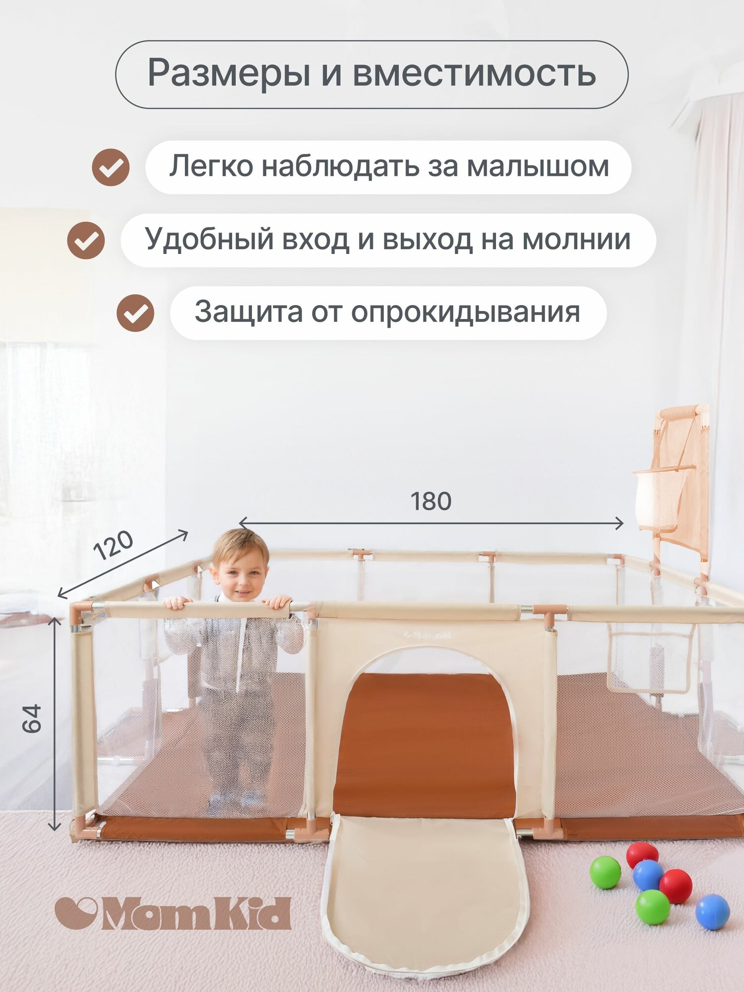 СохранитьМанеж детский игровой складной MOMKID с баскетбольным кольцом и футбольными воротами, для малышей и новорожденных, усиленный каркас с шариками для сухого бассейна, бежевый интересное: