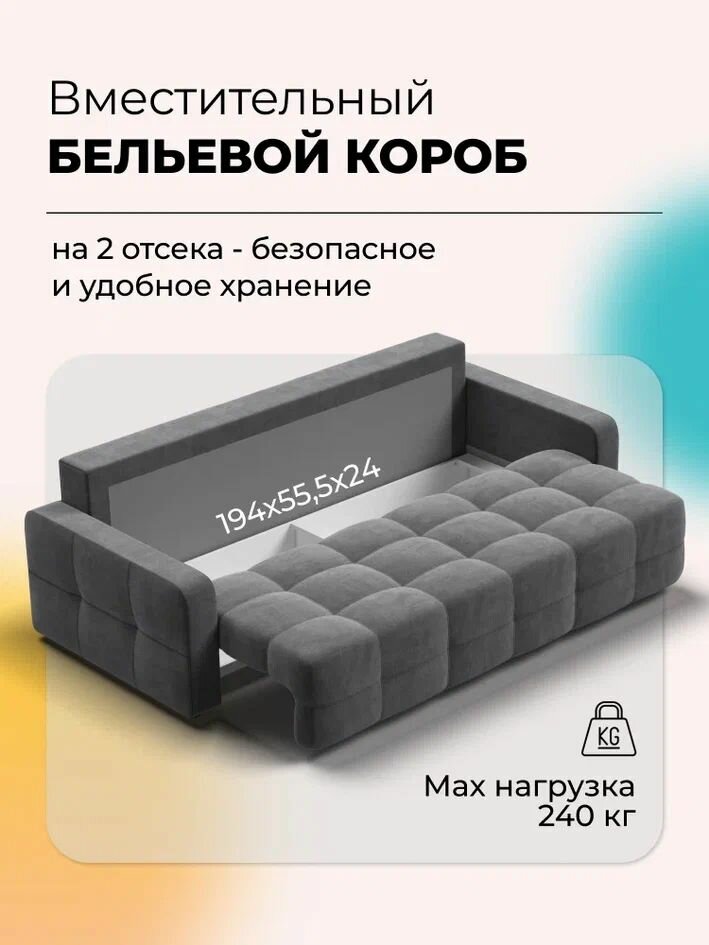 Купить Диван-кровать DANDY Euro SE, с ящиком для хранения, велюр Monolit серый, 233x103x91 см