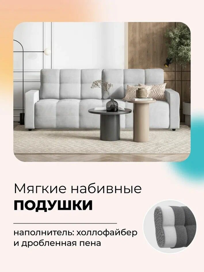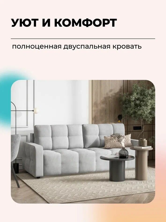 Диван-кровать DANDY Euro SE, с ящиком для хранения, велюр Monolit серый, 233x103x91 см