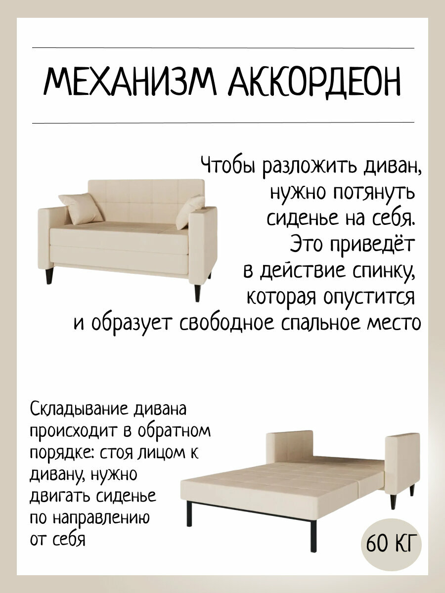 Диван Этро, бежевый, 120x86x81 см, прямой, аккордеон, раскладной интересное: