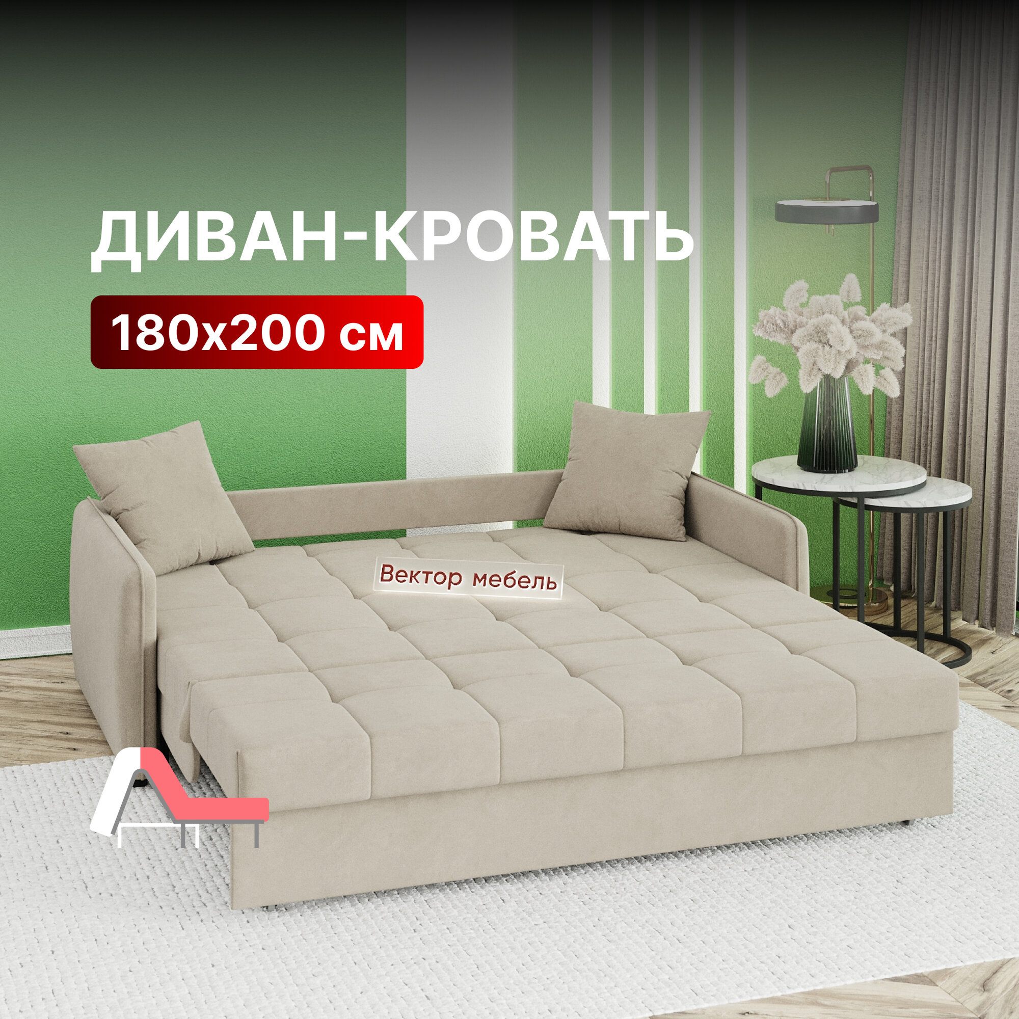СохранитьДиван-кровать раскладной прямой Хилтон на металлокаркасе, аккордеон, ортопедический, 180х200, велюр бежевый интересное: