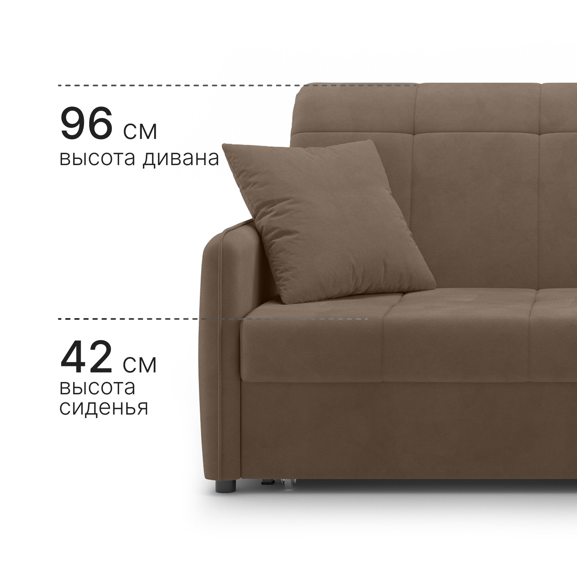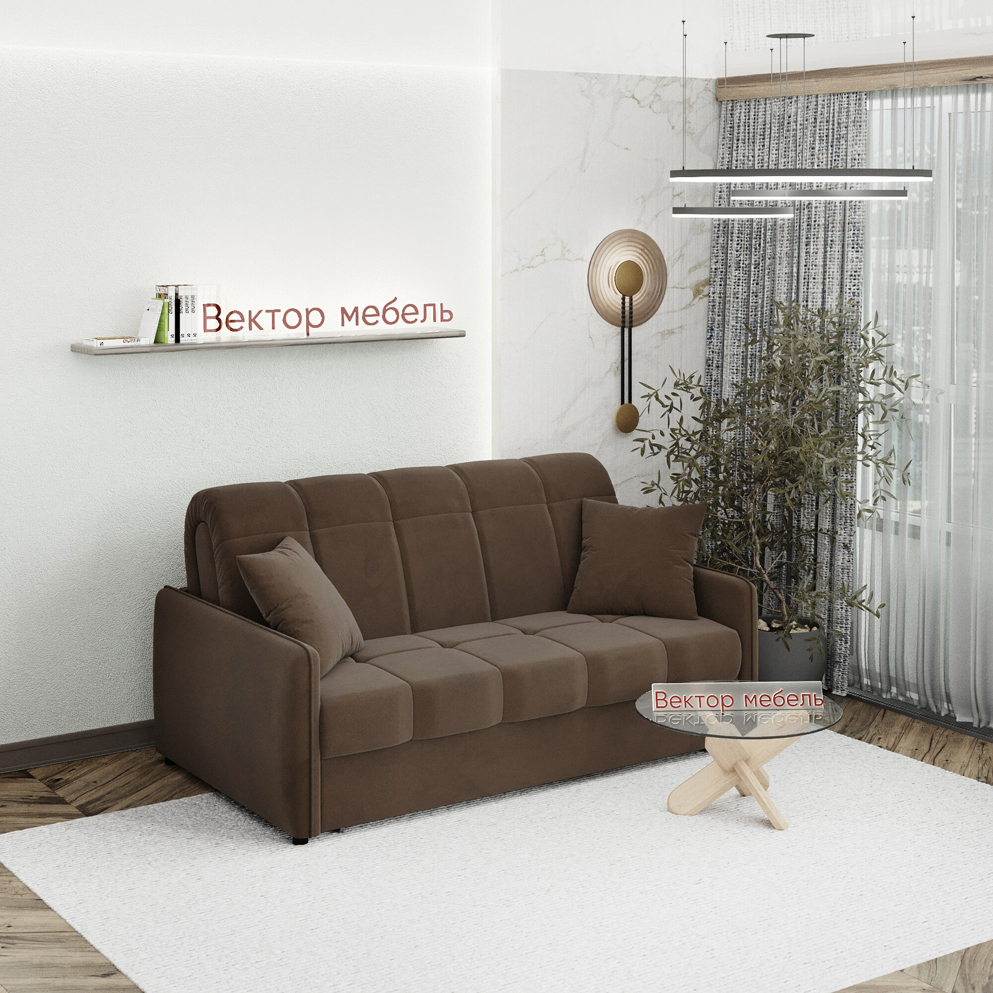 Купить Диван-кровать раскладной Хилтон на металлокаркасе, Аккордеон, ортопедический, 160х200 спальное место, велюр коричневый