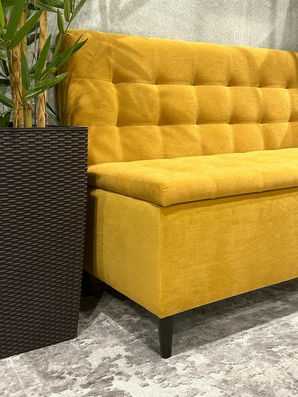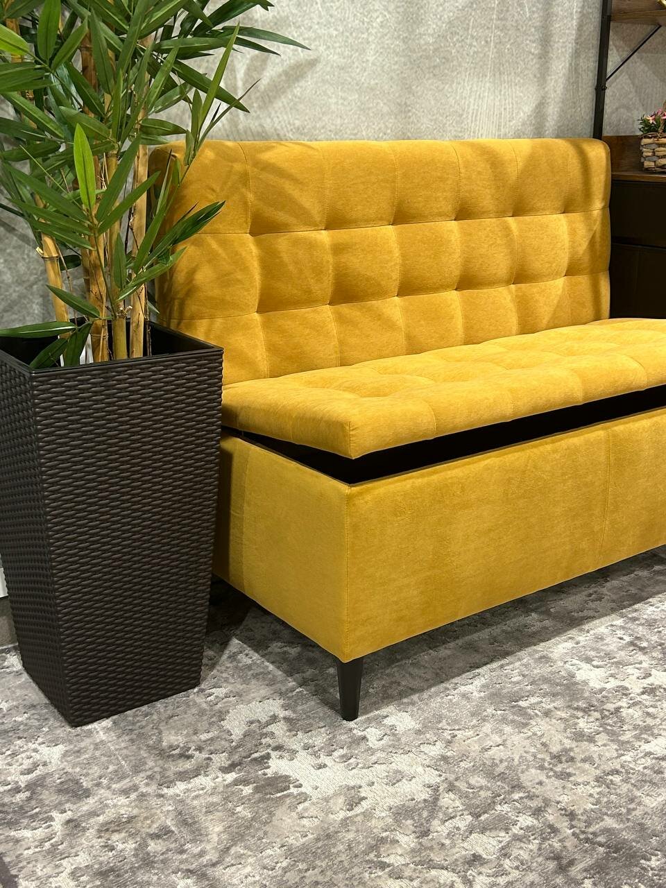 СохранитьПрямой диван EL TODO одри с ящиком для хранения, на кухню, на балкон, в прихожую, велюр, желтый, охра,110х56х84 см (ШхГхВ) интересное: