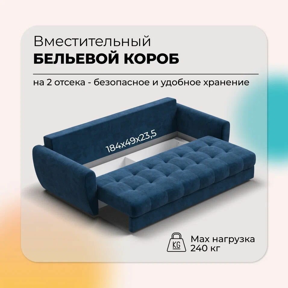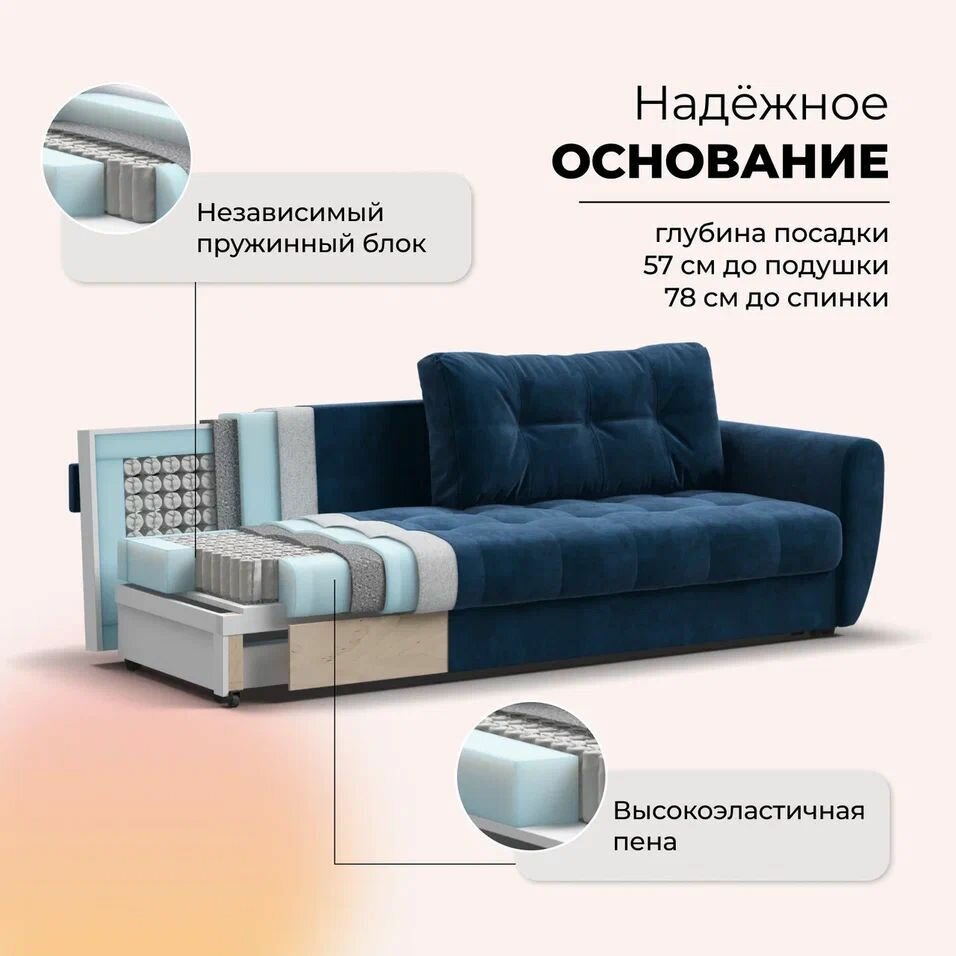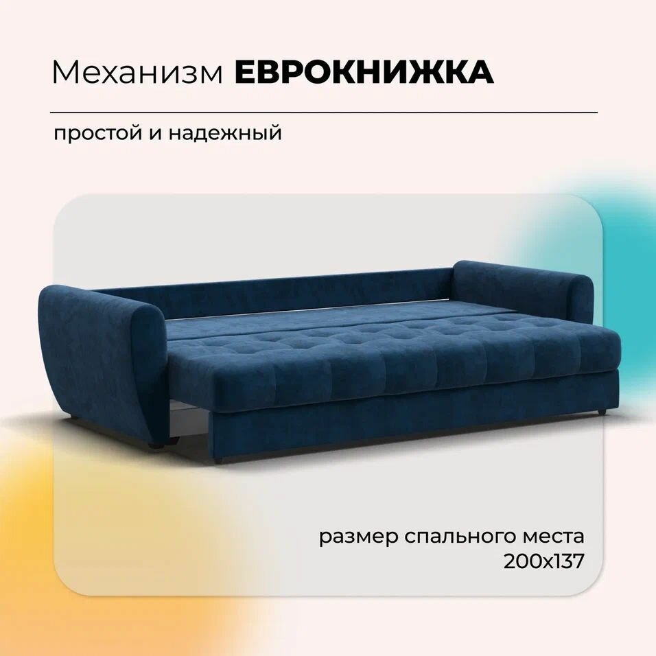 Раскладной диван-кровать престон 2.0, еврокнижка, велюр Monolit синий, 235x104x93 см, Хофхаус интересное: