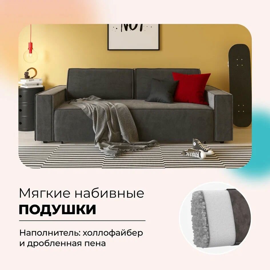 СохранитьДиван-кровать с ящиками для хранения NORD 2.0, еврокнижка, велюр Monolit серый, 240х101х82 см интересное: