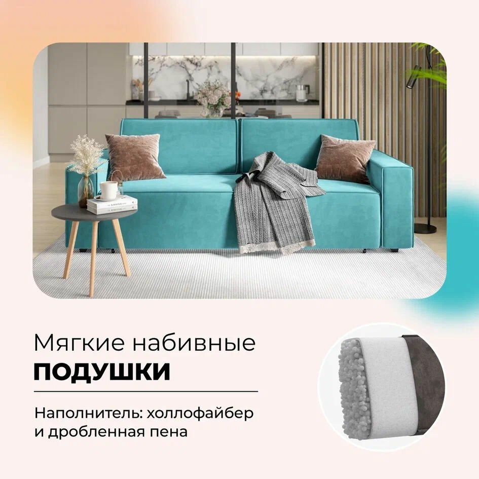 Диван-кровать с ящиками для хранения NORD 2.0, еврокнижка, велюр Monolit аква, 240х101х82 см