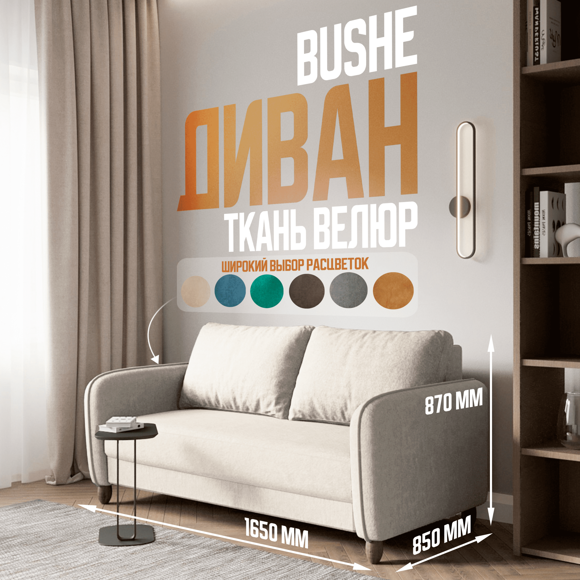 Диван кровать прямой BUSHE, размер: 87х155, спальное место: 130х192, обивка: велюр, бежевый